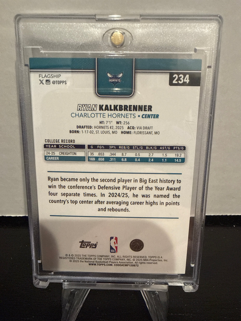 Ryan Kalkbrenner 2025 Topps Basketball Black Foil Rookie, 05/10