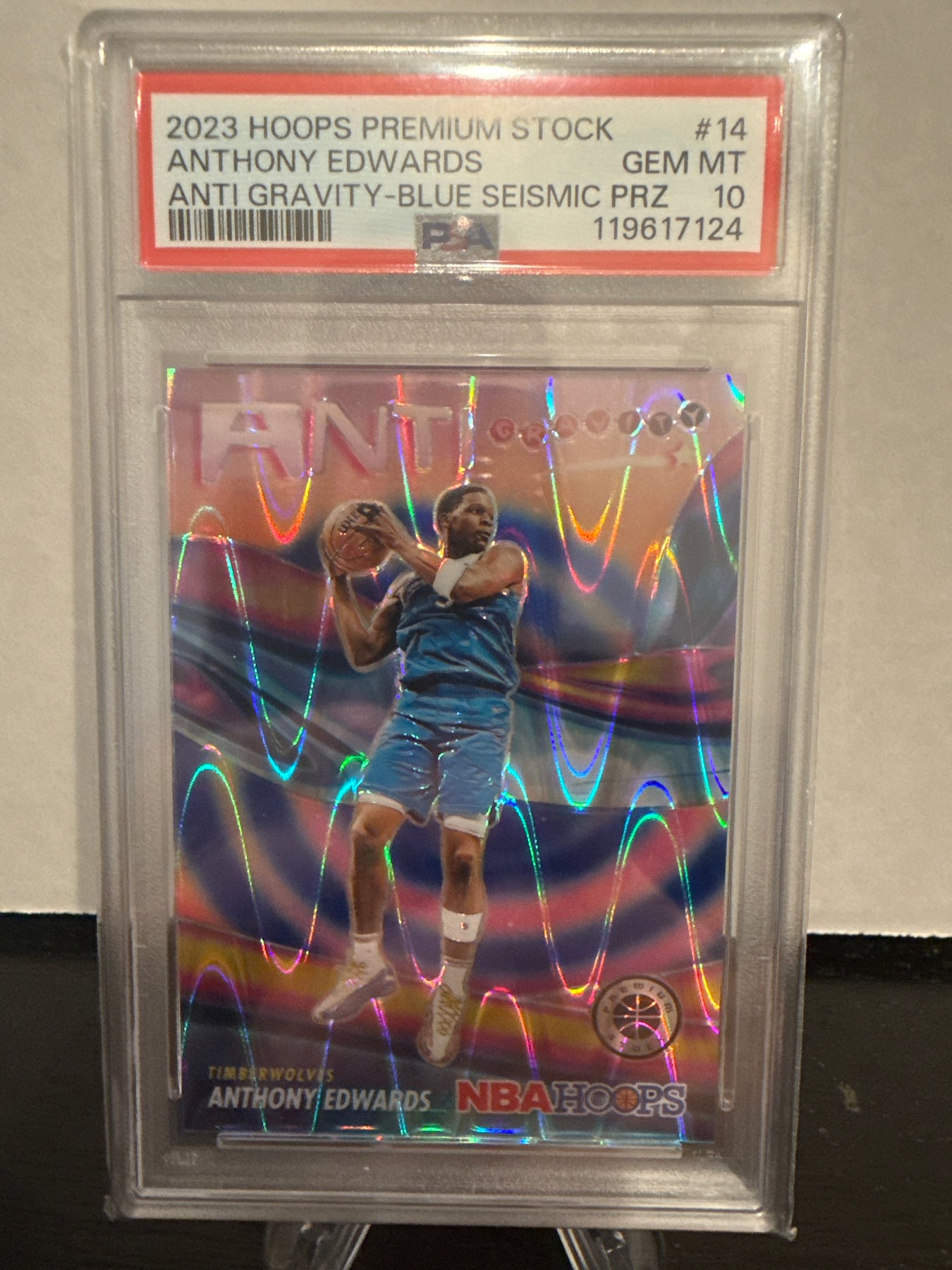 Anthony Edwards 2023 Panini NBA Hoops Premium Stock Anti Gravity Blue Seismic Prizm, 78/99, PSA 10 Gem Mint, Card Number 14