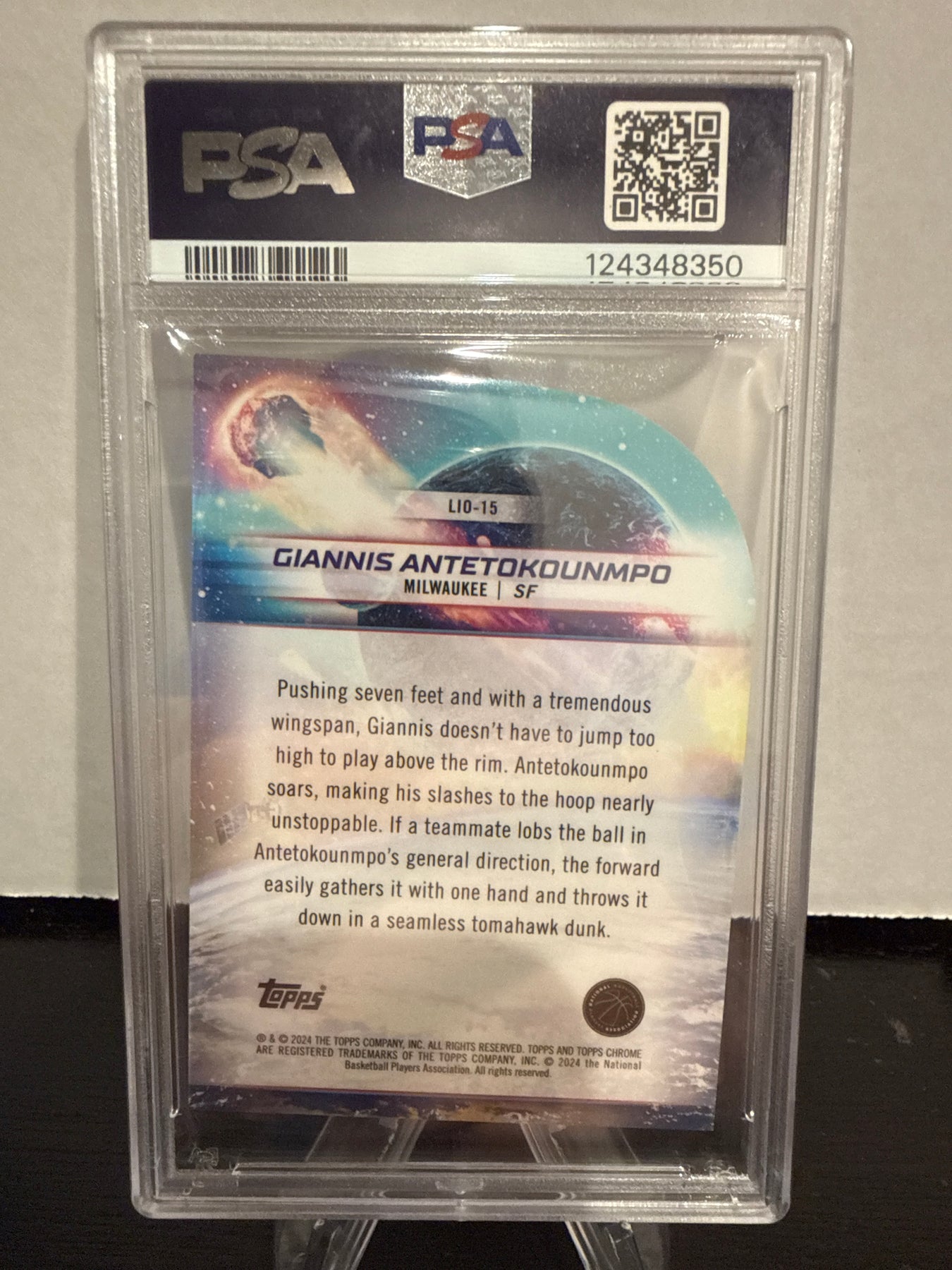 Giannis Antetokounmpo 2023 Topps Chrome Cosmic Launched Into Orbit Die Cut, PSA 10 Gem Mint, Card Number LIO15