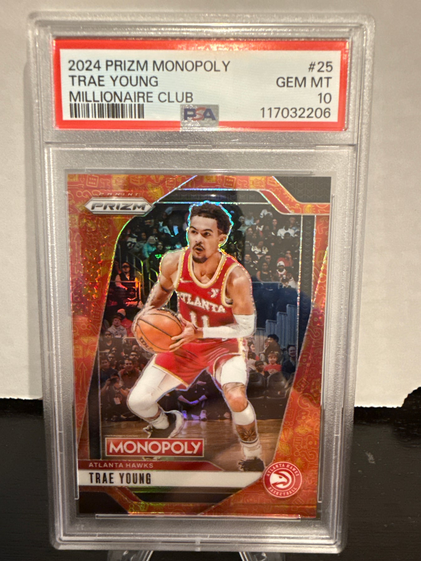 Trae Young 2024 Panini Prizm Monopoly Millionaire Club, 0400/1499, PSA 10 Gem Mint, Card Number 25PSA Certification 117032206Card Stand sold separately.