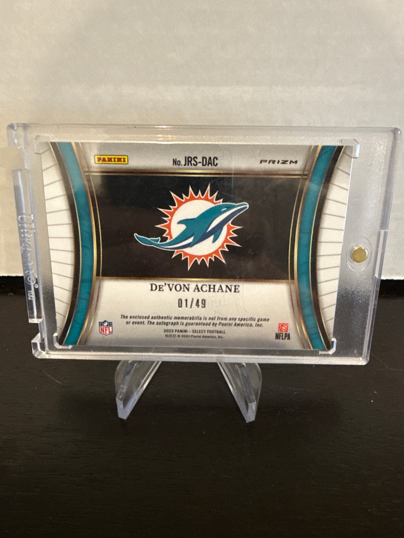 De'von Achane 2023 Panini Select Rookie Patch Auto Copper, 01/49, Card Number JRSDAC