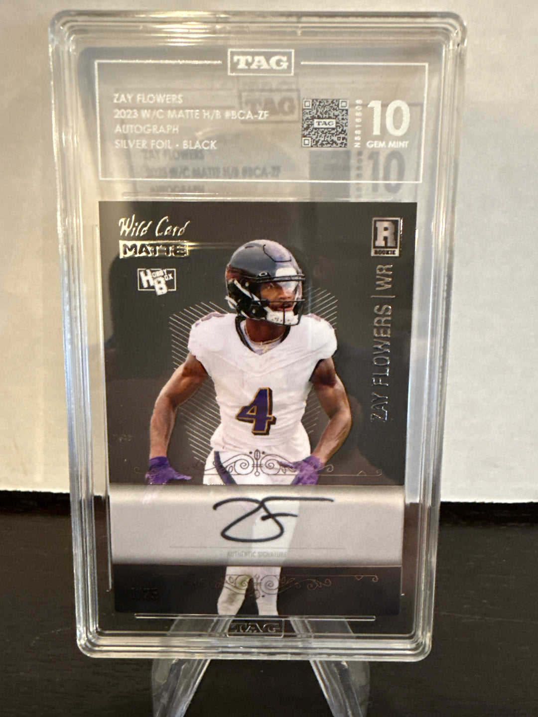 Zay Flowers 2023 Wild Card Silver Foil Black Auto, 1/25, TAG 10 Gem Mint