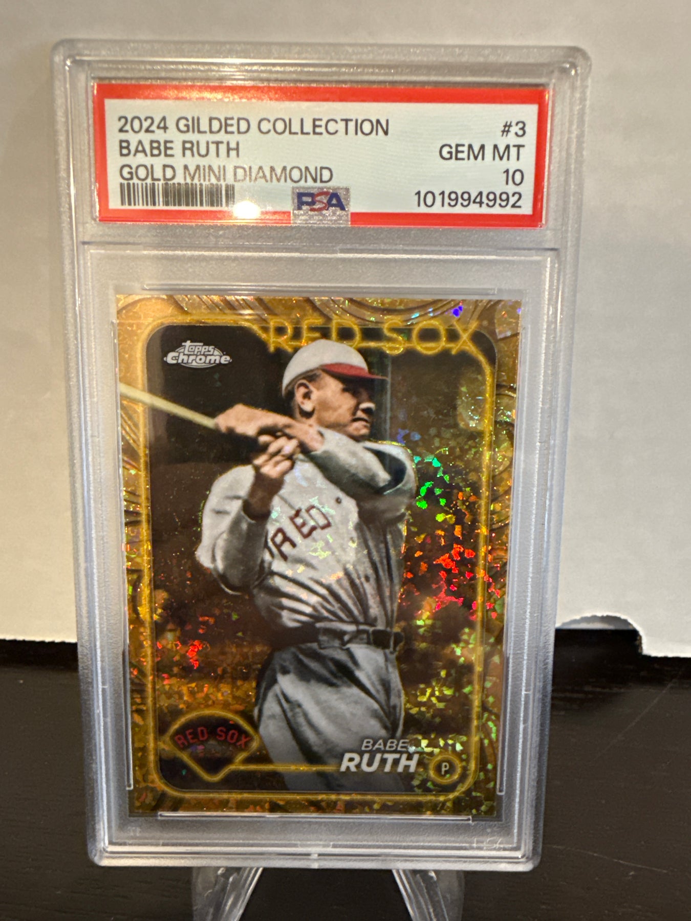 Babe Ruth 2024 Topps Gilded Collection Gold Mini Diamond, 42/50, PSA 10 Gem Mint, Card Number 3PSA Certification 101994992Card Stand sold separately.