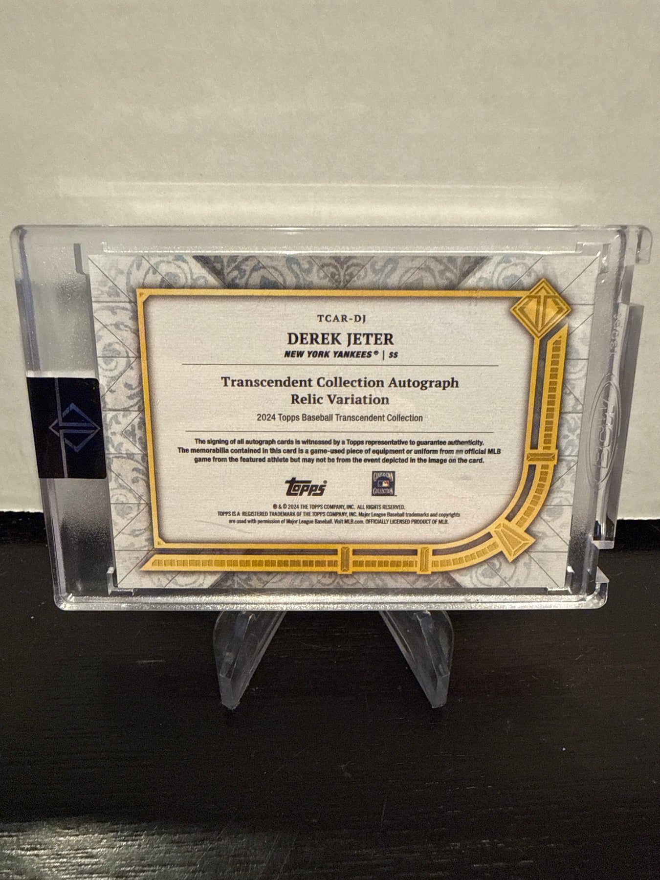 Derek Jeter 2024 Topps Transcendent Collection Game Used Patch Auto, 05/25, Card Number TCARDJCard Stand sold separately.