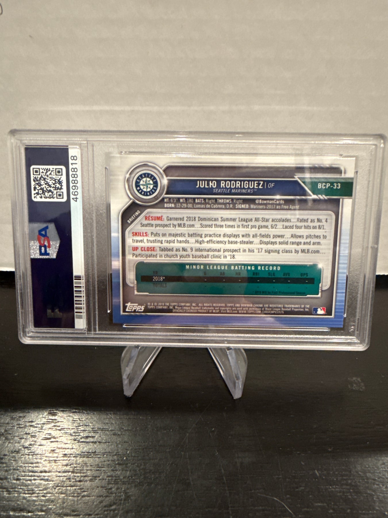Julio Rodriguez 2019 Bowman Chrome 1st, PSA 10 Gem Mint, Card Number 33