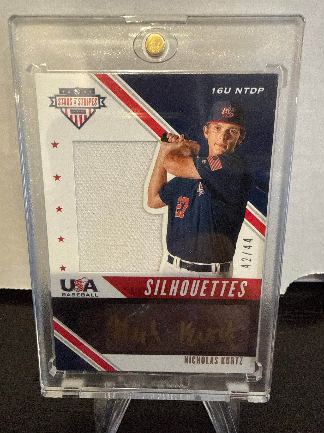 Nick Kurtz 2020 Panini USA Stars & Stripes Patch Auto, 42/44, Card Number USJNKCard Stand sold separately.