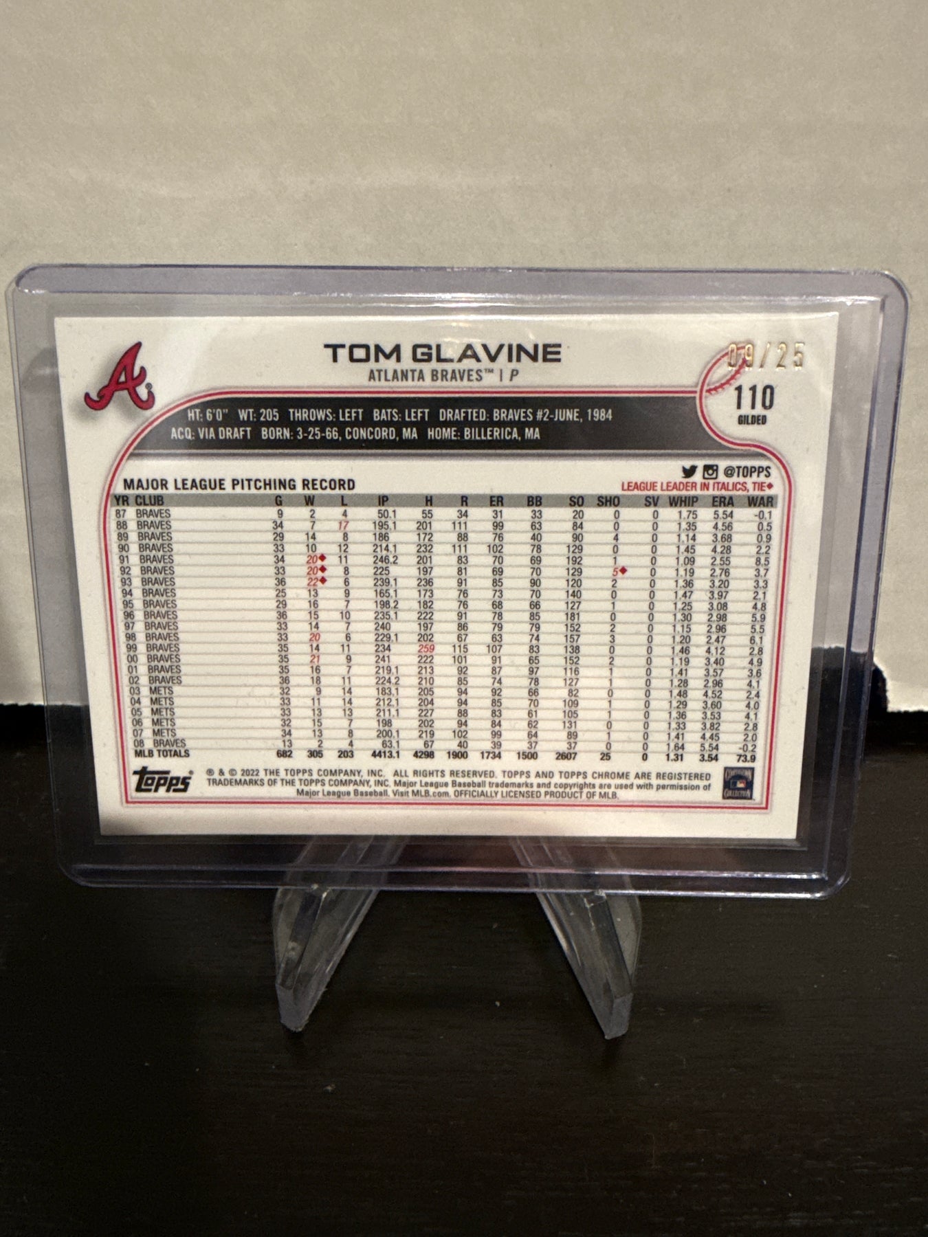 Tom Glavine 2022 Topps Gilded Collection Gold Etch Raywave Refractor, 09/25, Card Number 110Card Stand sold separately.