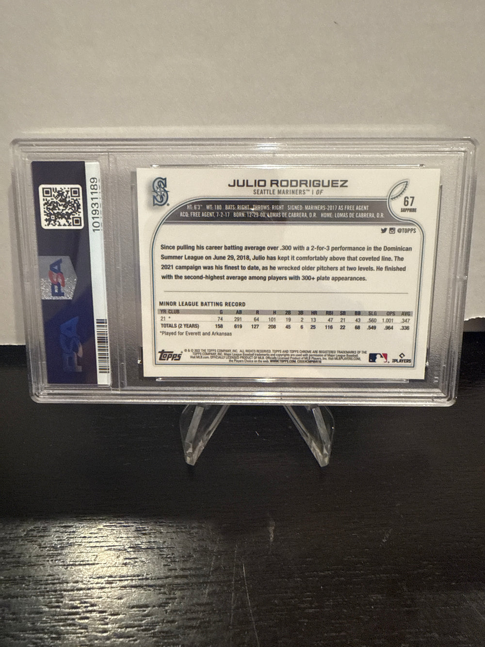 Julio Rodriguez 2022 Topps Chrome Sapphire Rookie, PSA 9 Mint