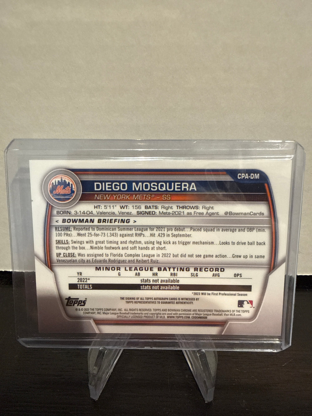 Diego Mosquera 2023 Bowman Chrome 1st Bowman Gold Refractor Auto, 21/50