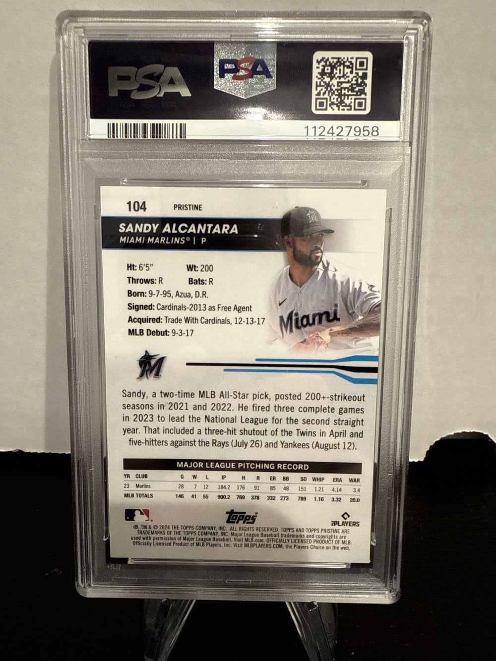 Sandy Alcantara 2024 Topps Pristine Gold Refractor, 45/50, PSA Authentic Auto