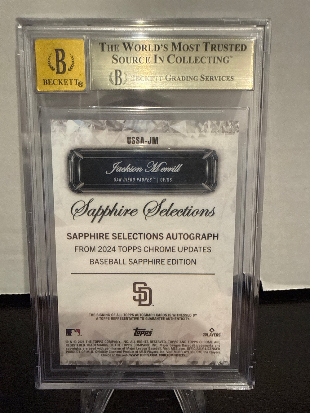 Jackson Merrill 2024 Topps Chrome Update Sapphire Selections Rookie Auto Orange, 14/25, BGS 9.5 Gem Mint