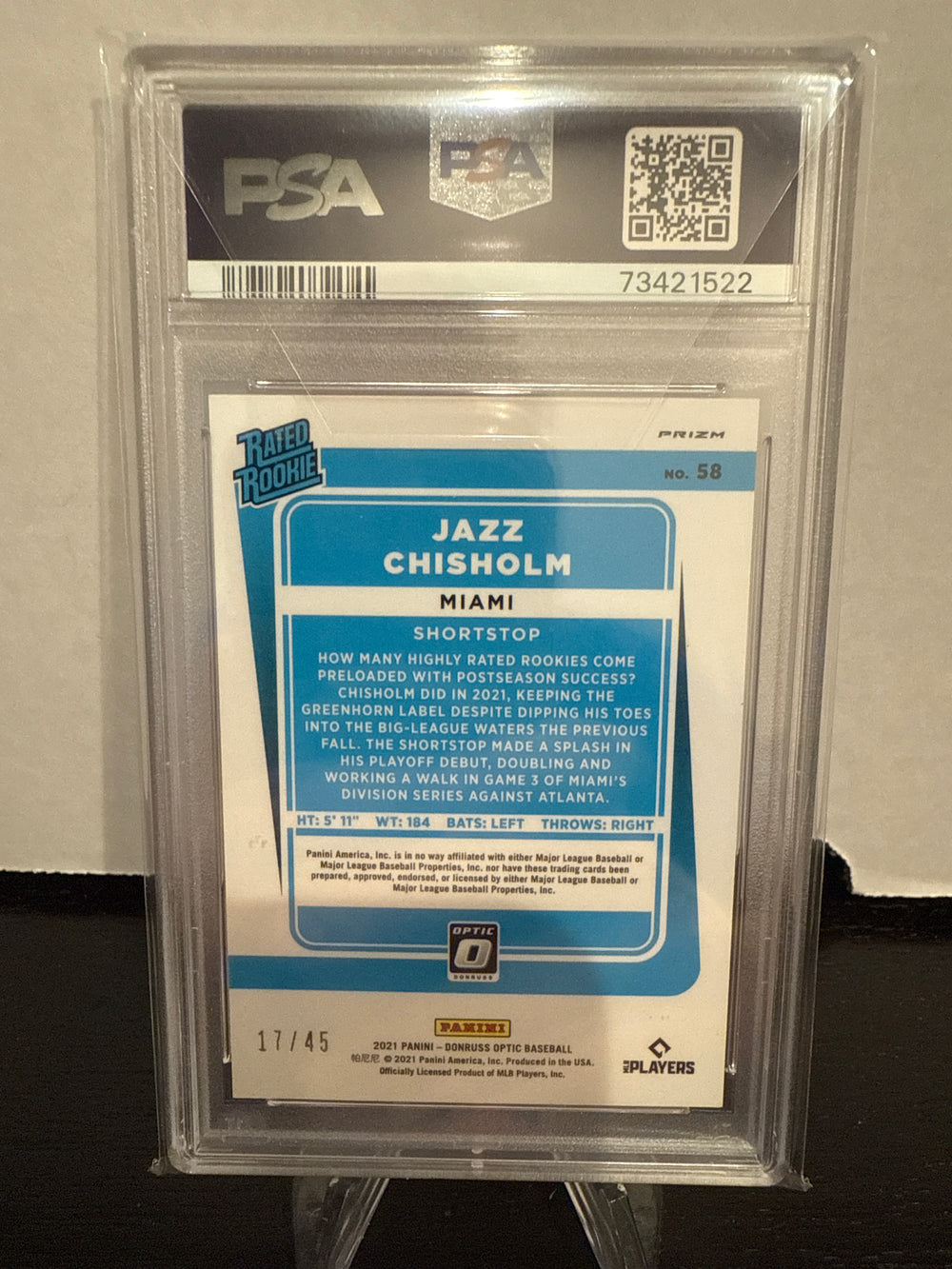 Jazz Chisholm 2021 Panini Donruss Optic Rated Rookie Liberty, 17/45, PSA 10 Gem Mint