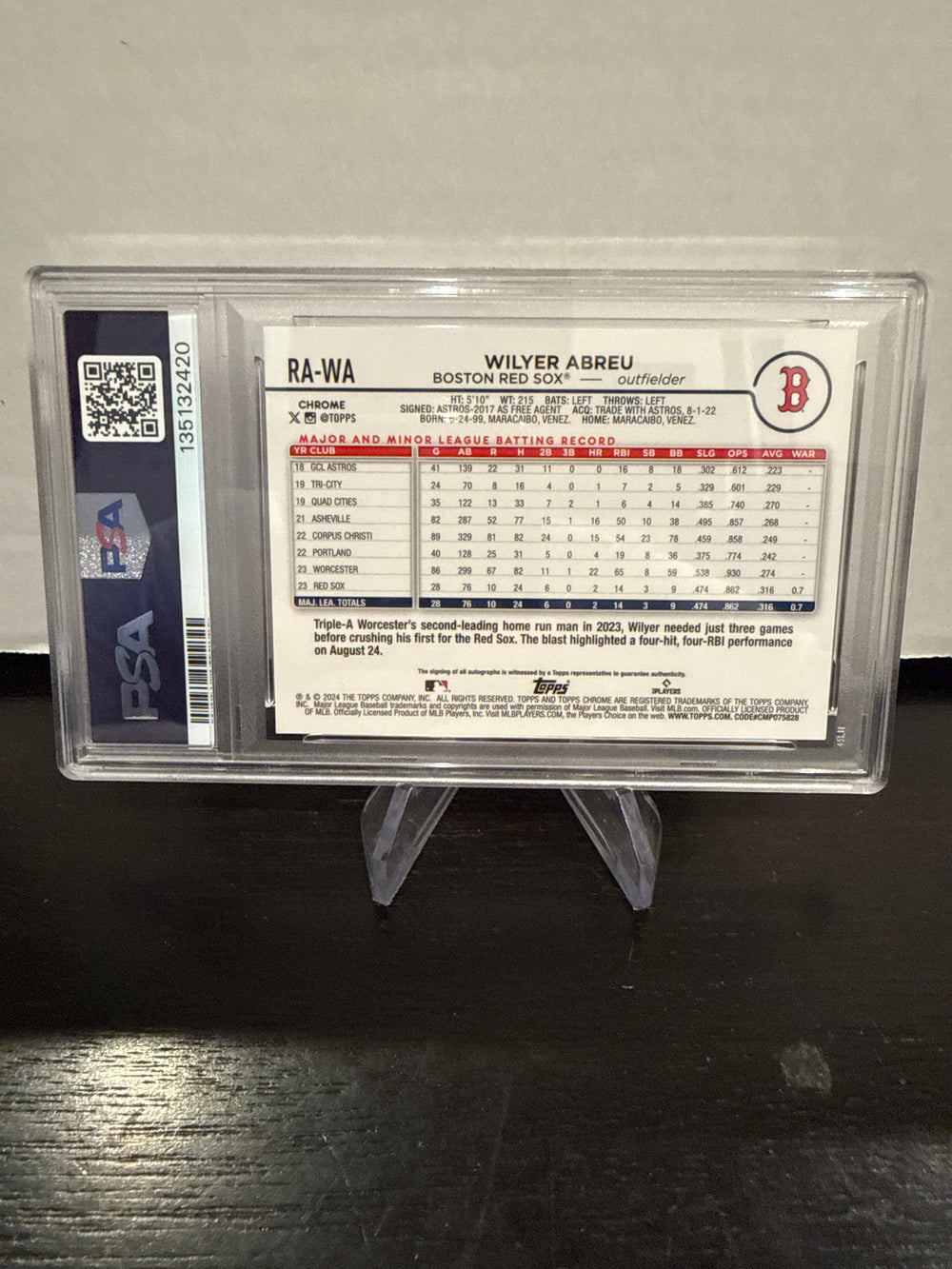 Wilyer Abreu 2024 Topps Chrome Rookie Auto Purple Speckle Refractor, 171/299, PSA 10 Gem Mint