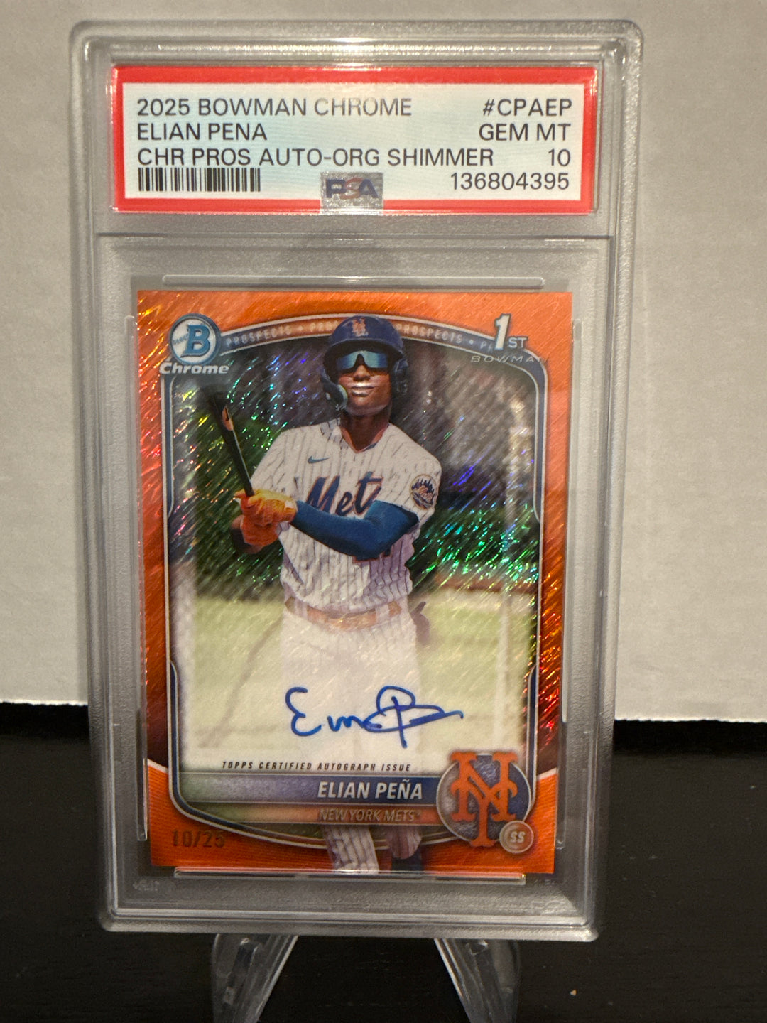 Elian Pena 2025 Bowman Chrome Orange Shimmer 1st Auto, 10/25, PSA 10 Gem Mint