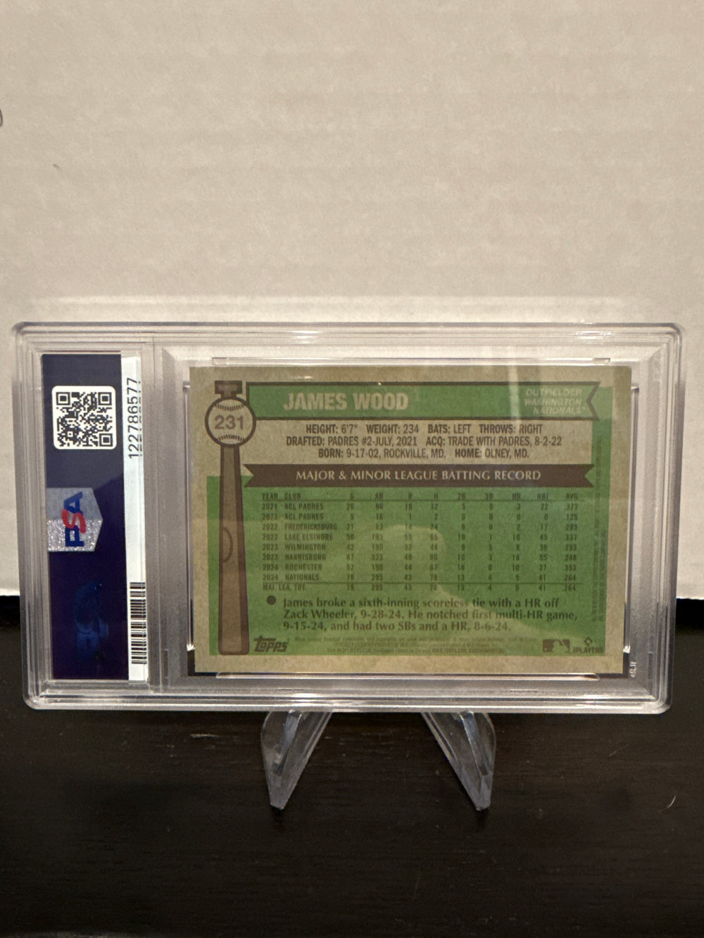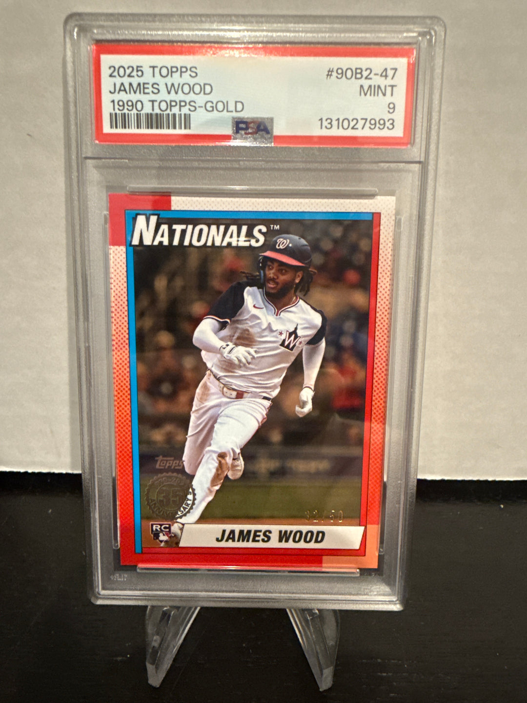 James Wood 2025 Topps 1990 Topps Gold Rookie, 32/50, PSA 9 Mint