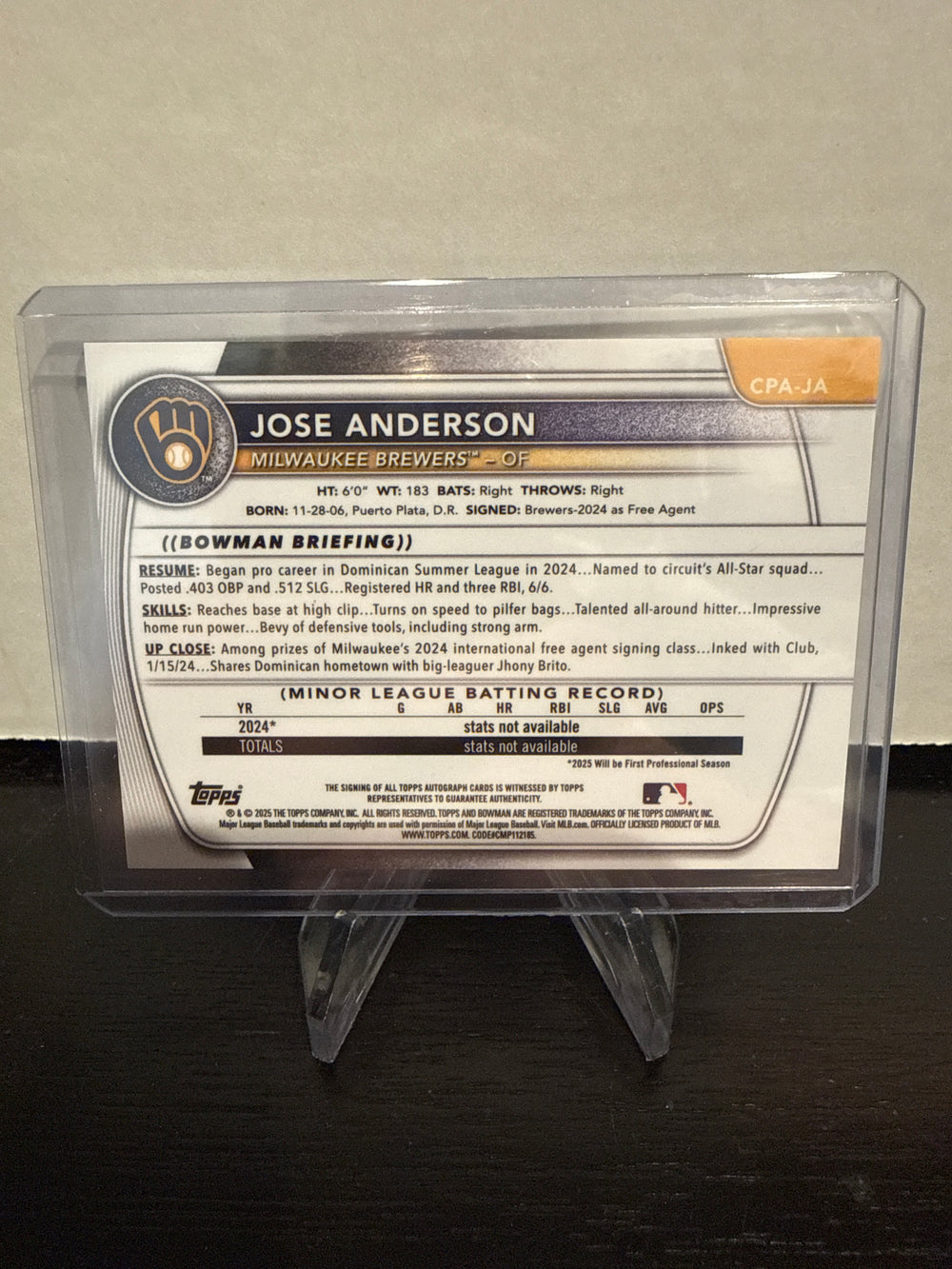 Jose Anderson 2025 Bowman Chrome Gold Refractor 1st Auto, 39/50