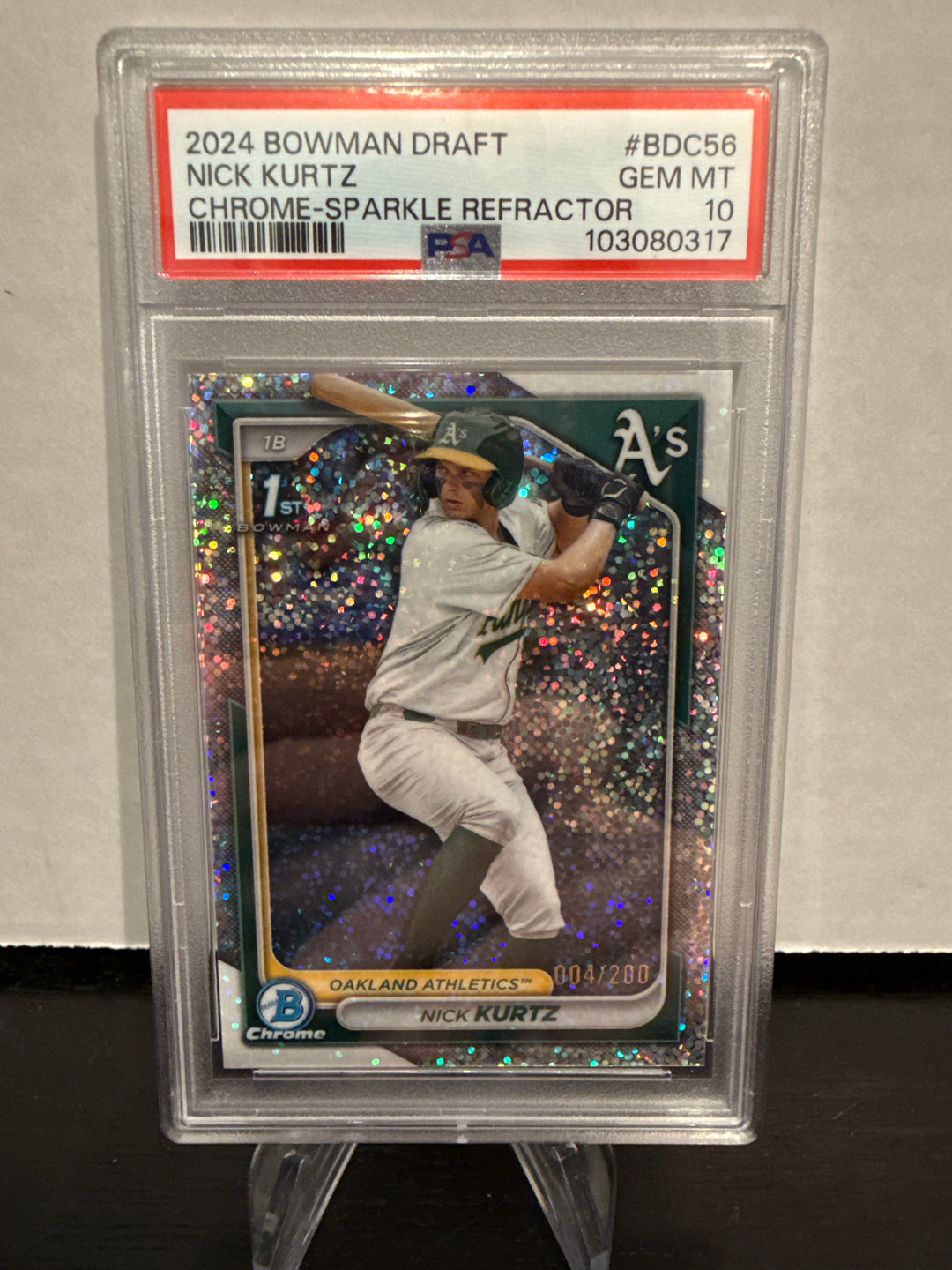 Nick Kurtz 2024 Bowman Draft Chrome Sparkle Refractor, 004/200, PSA 10 Gem Mint
