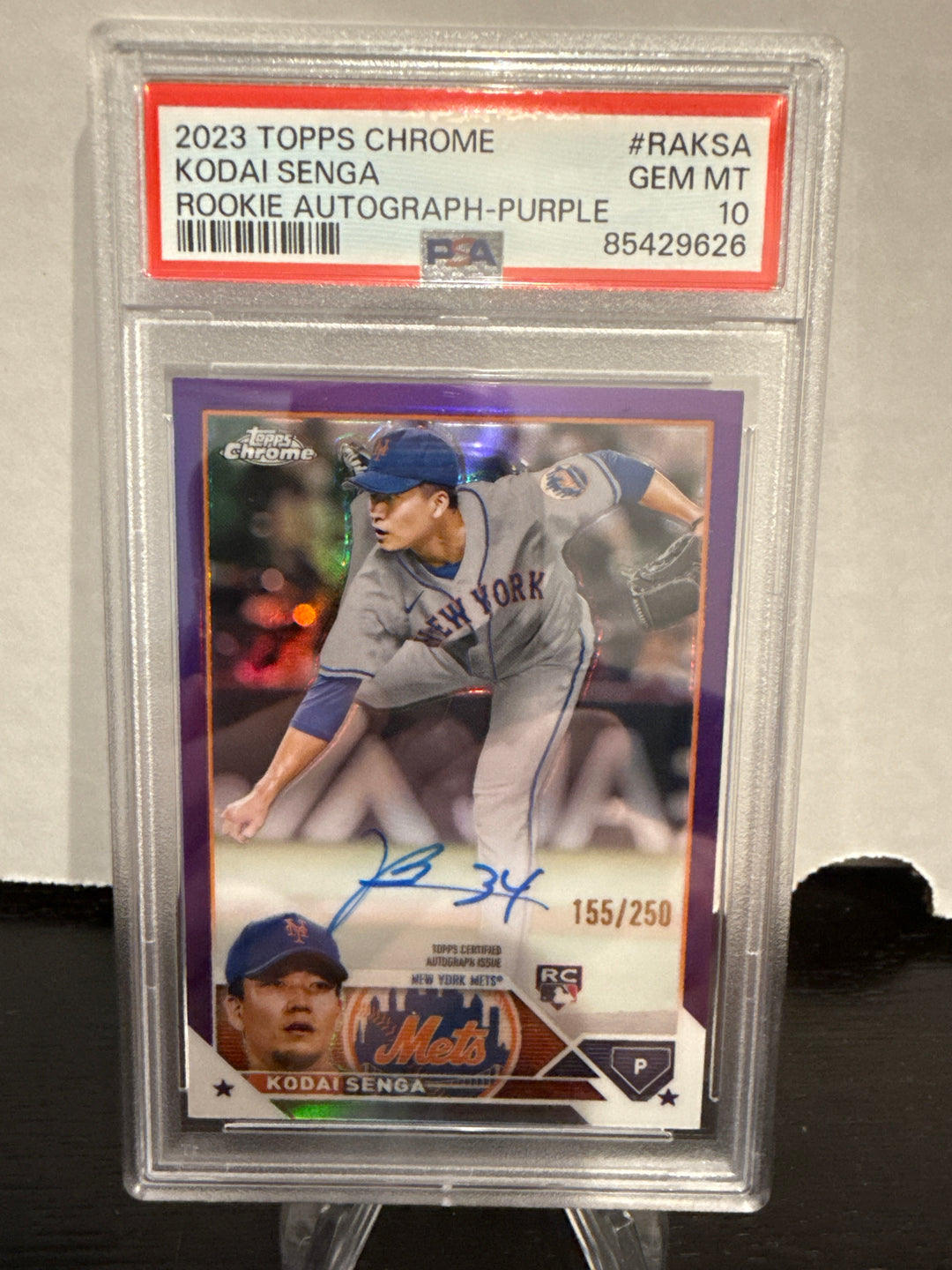 Kodai Senga 2023 Topps Chrome Rookie Autograph Purple, 155/250, PSA 10 Gem Mint