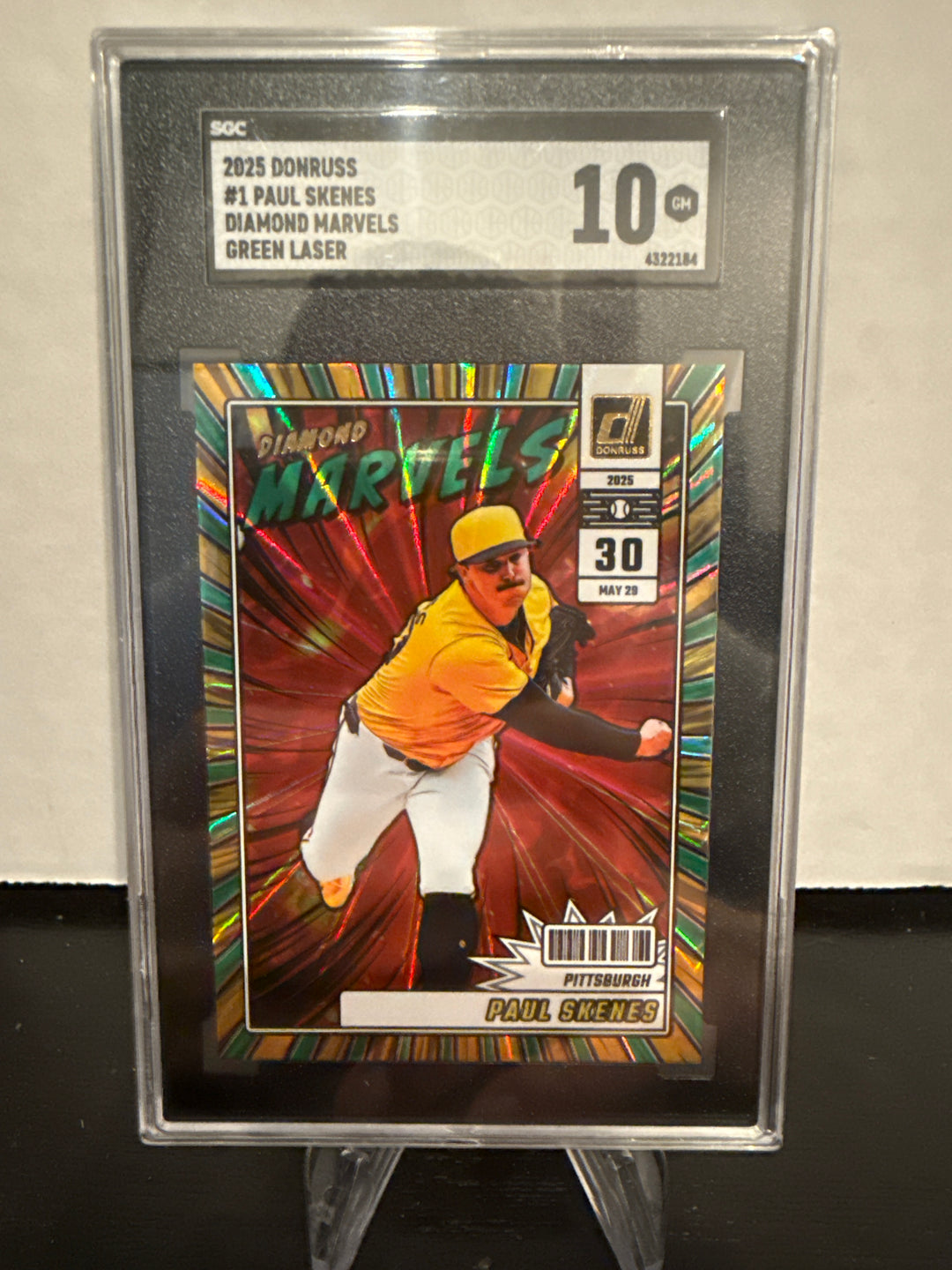 Paul Skenes 2025 Panini Donruss Diamond Marvels Green Laser, SGC 10 Gem Mint