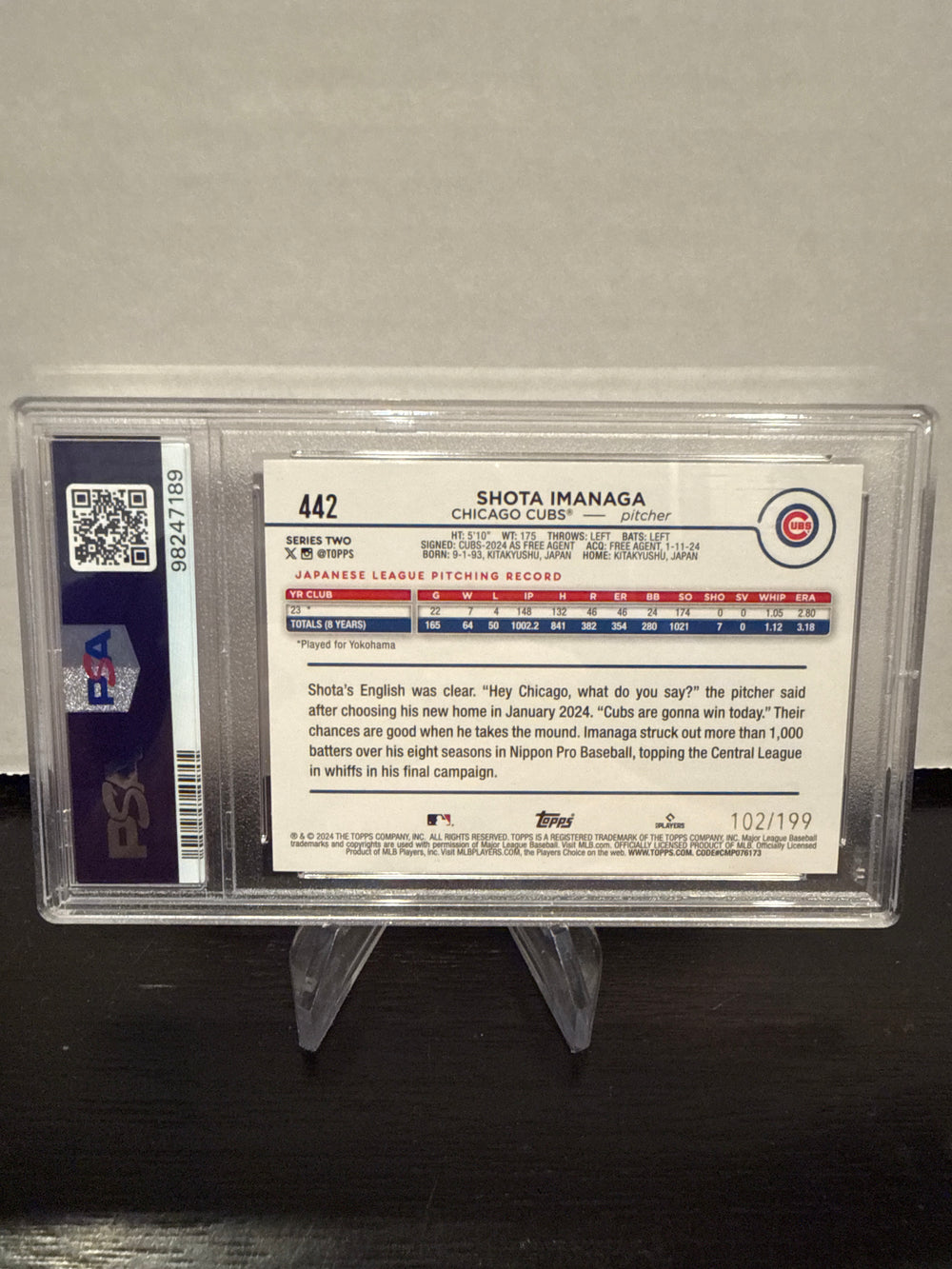 Shota Imanaga 2024 Topps Series Two Red Foil Rookie, 102/199, PSA 10 Gem Mint