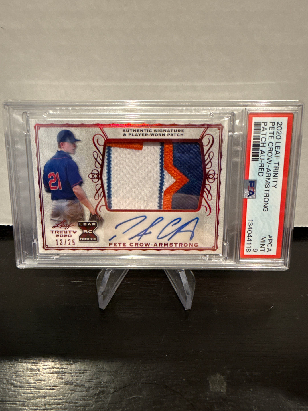 Pete Crow-Armstrong 2020 Leaf Trinity Rookie Patch Auto Red, 13/25, PSA 9 Mint