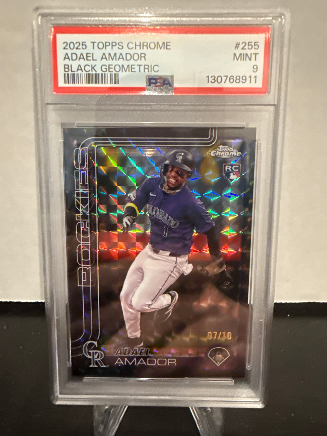 Adael Amador 2025 Topps Chrome Black Geometric Rookie, 07/10, PSA 9 Mint