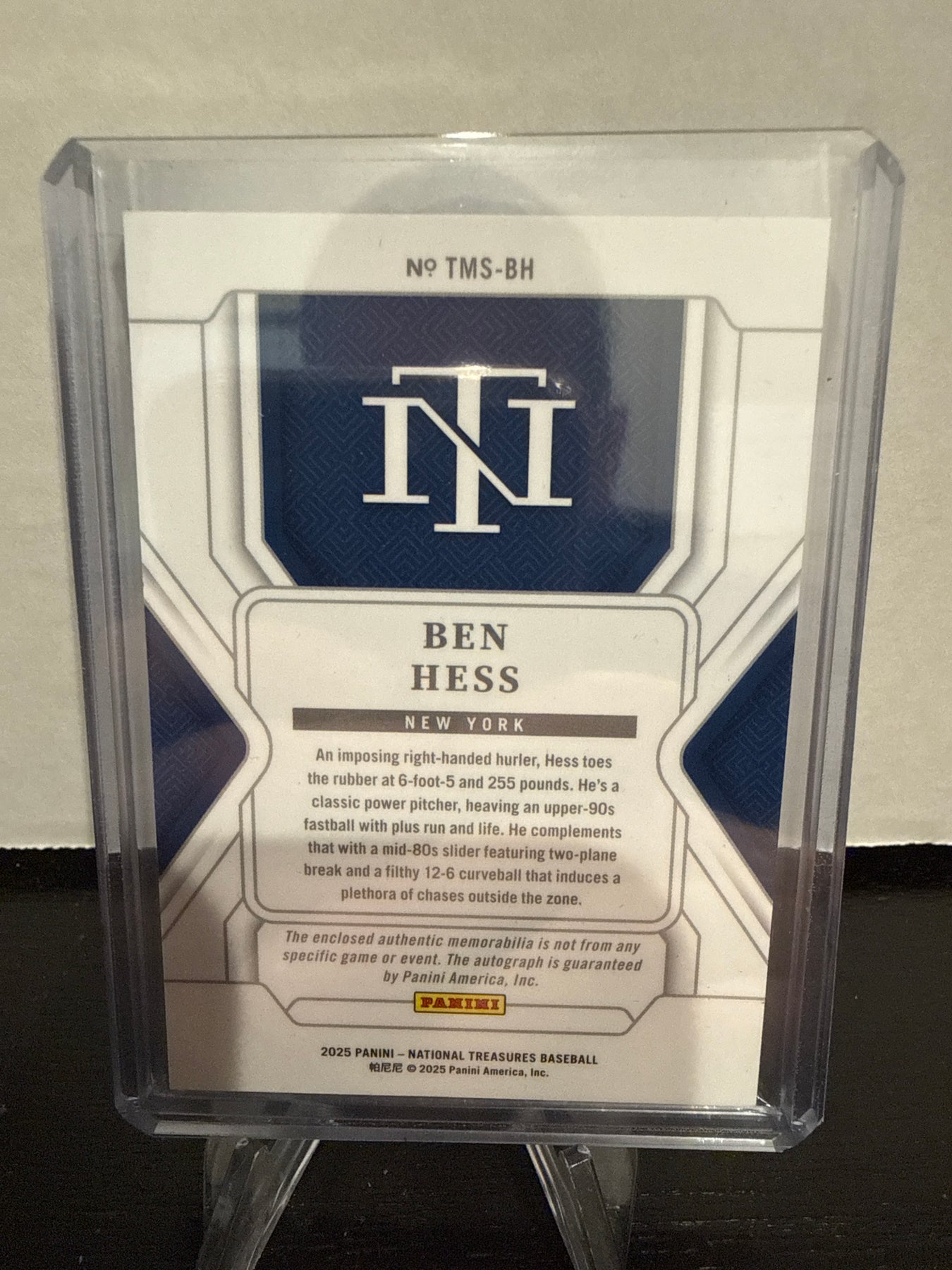 Ben Hess 2025 Panini National Treasure Patch Auto Gold, 09/10