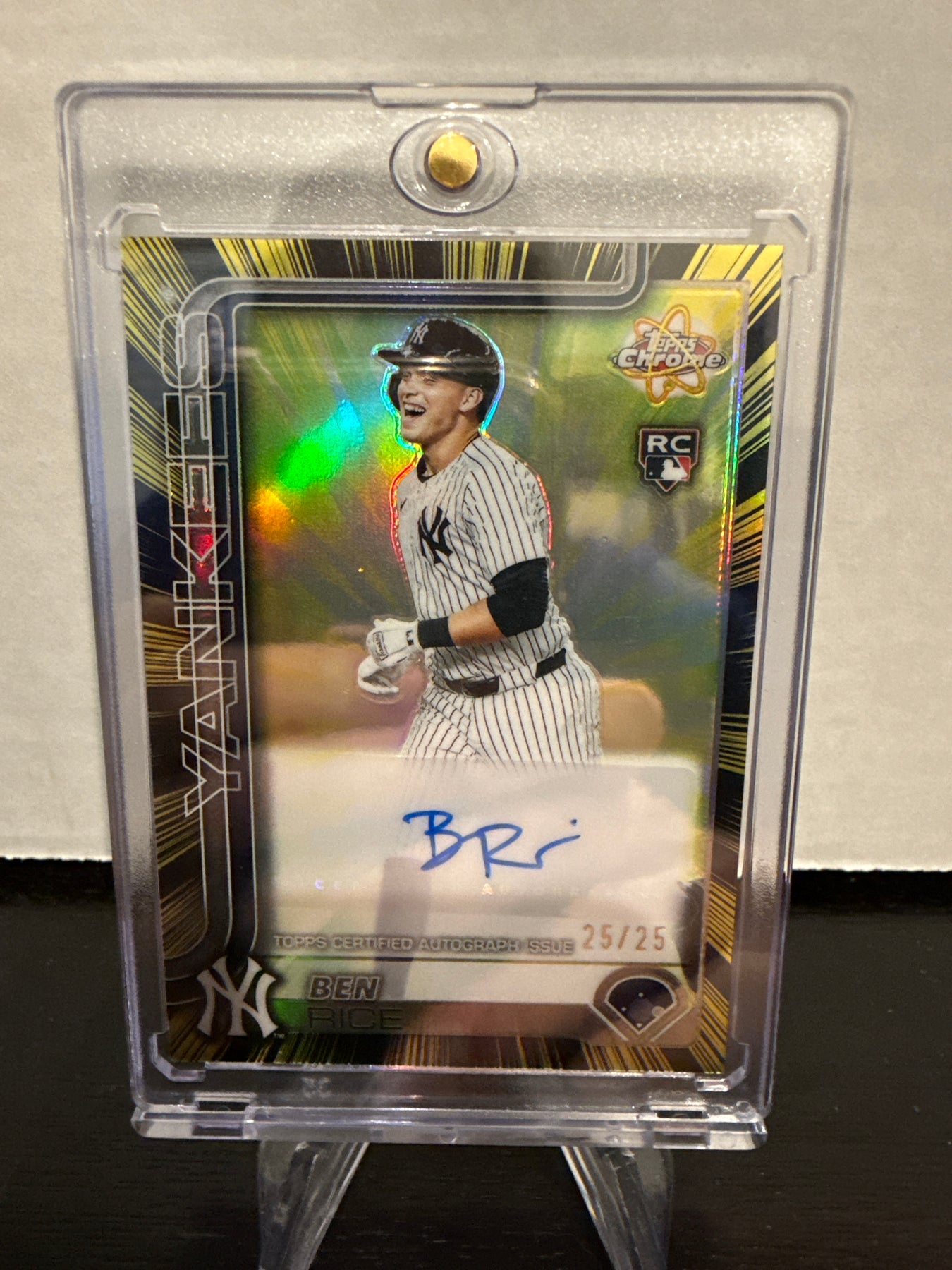 Ben Rice 2025 Topps Chrome Update Radiating Rookie Auto, 25/25, Card Number RRABRCard Stand sold separately.