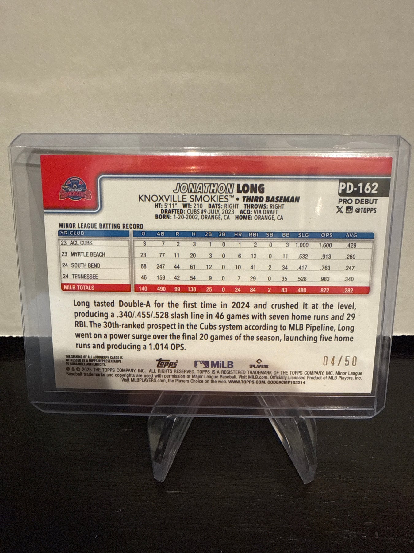 Jonathon Long 2025 Topps Pro Debut Gold Foil Auto, 04/50, Card Number PD162