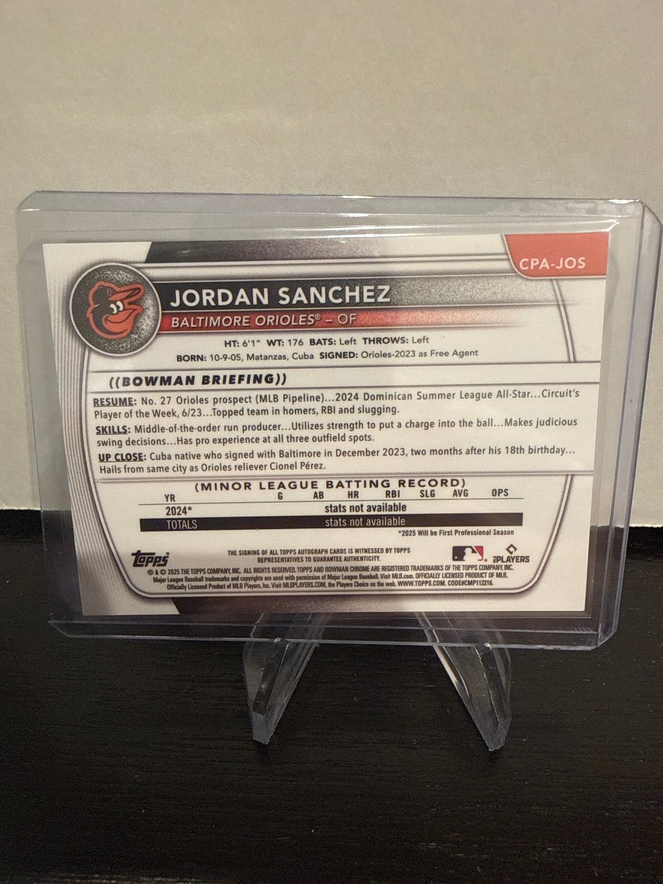 Jordan Sanchez 2025 Bowman Chrome 1st Auto Speckle Refractor, 131/299, Card Number CPAJOSCard Stand sold separately.