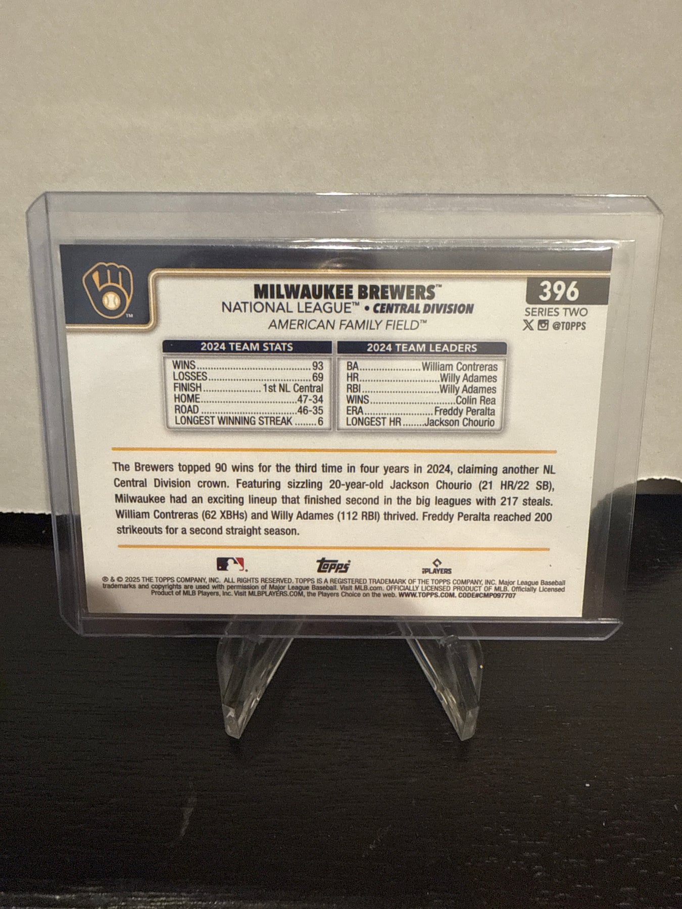 Milwaukee Brewers 2025 Topps Series Two, Team Logo SSP, Card Number 396Card Stand sold separately.