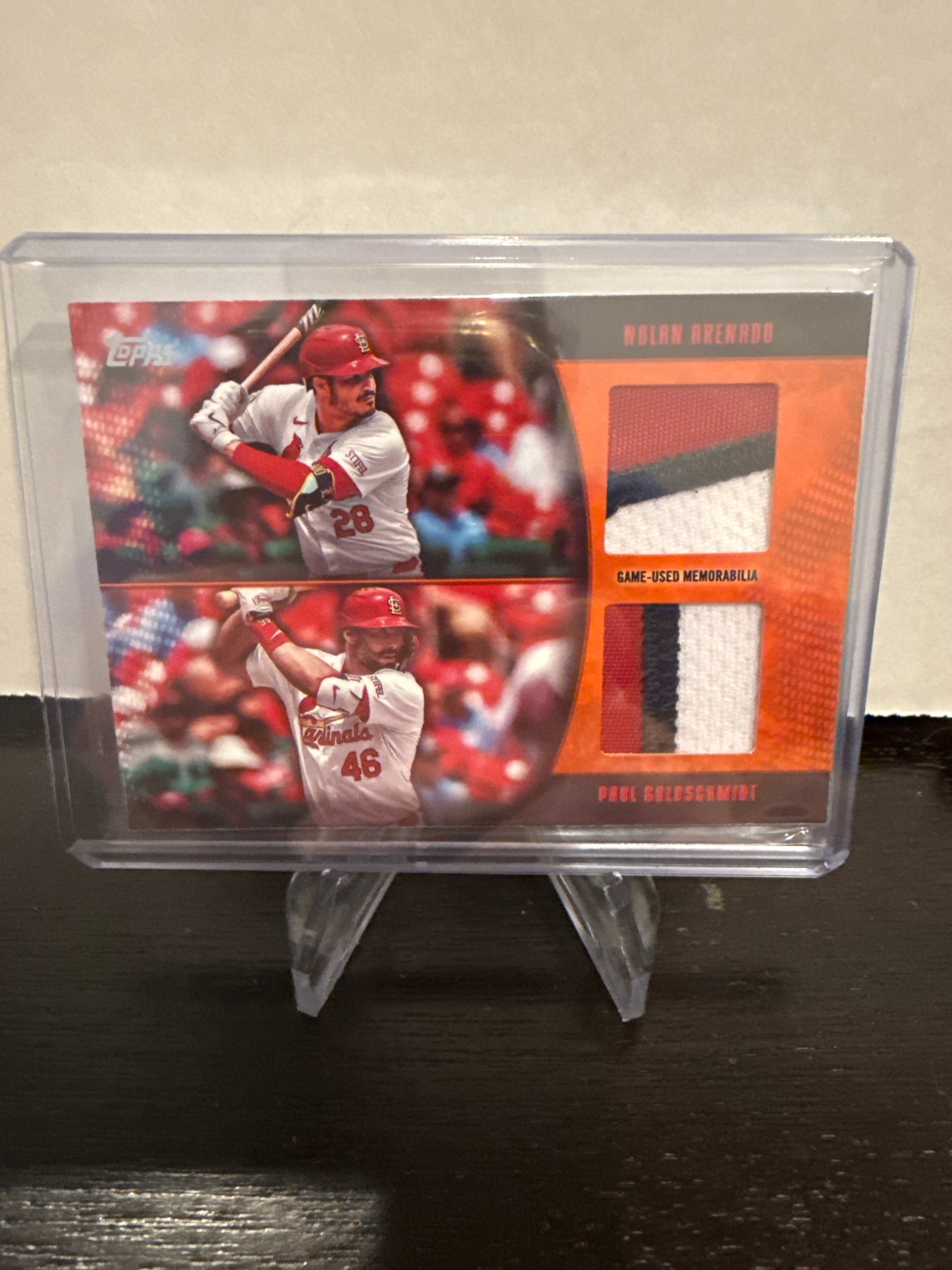Nolan Arenado/Paul Goldschmidt 2025 Topps Dual Relic, 07/25, Card Number MLMDRARGCard Stand sold separately.