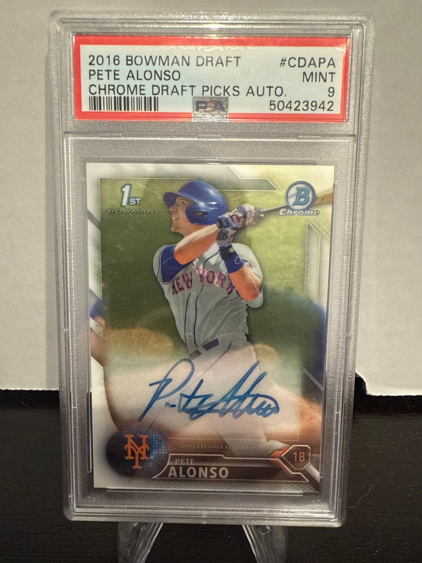 Pete Alonso 2016 Bowman Chrome Draft 1st Bowman Auto, PSA 9 Mint, Card Number CDAPAPSA Certification 50423942Card Stand sold separately.