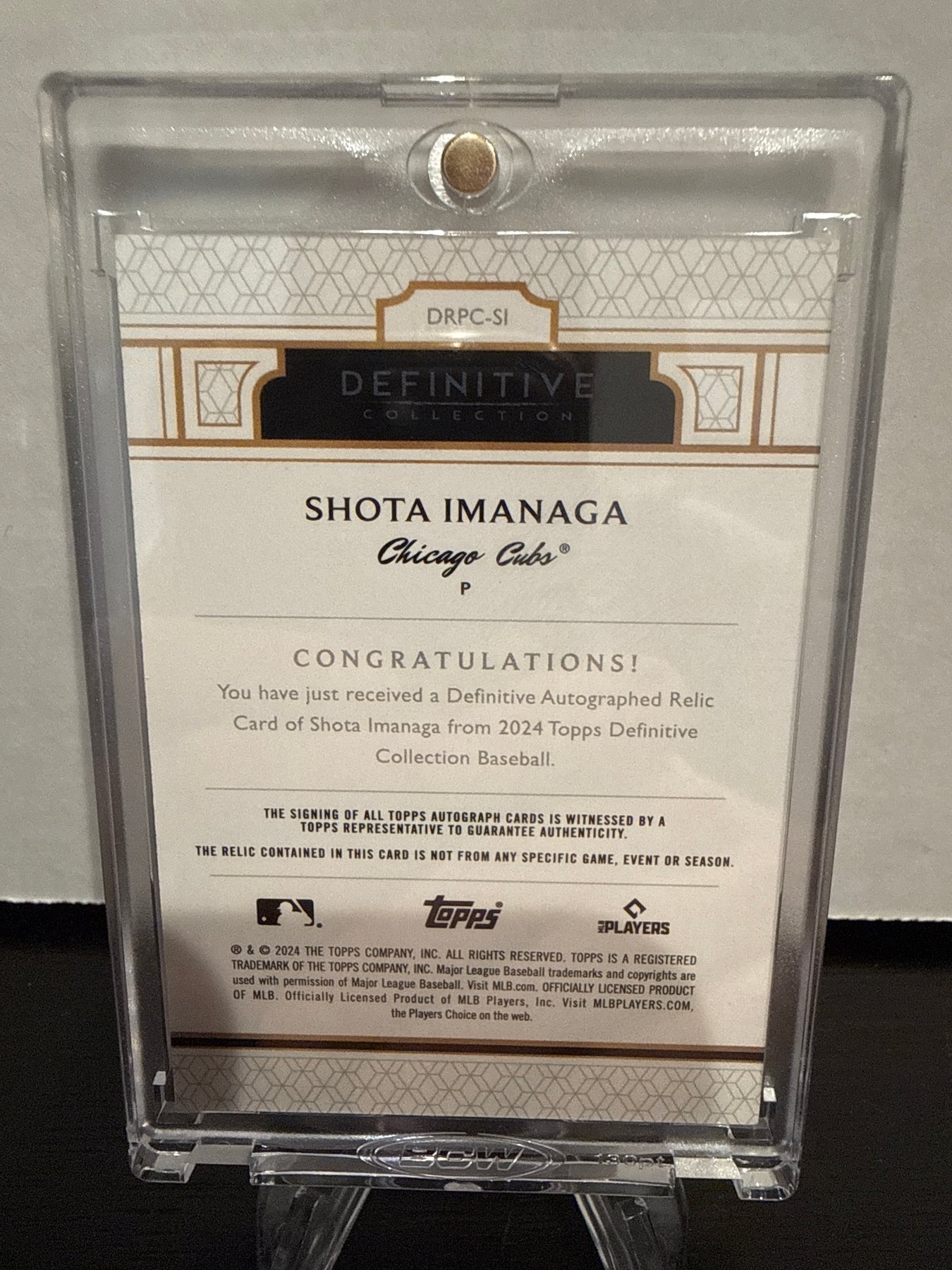 Shota Imanaga 2024 Topps Definitive Collection Rookie Patch Auto Green, 12/25, Card Number DRPCSICard Stand sold separately.