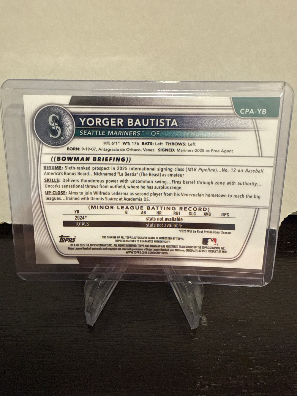 Yorger Bautista 2025 Bowman Chrome 1st Auto, Card Number CPAYB