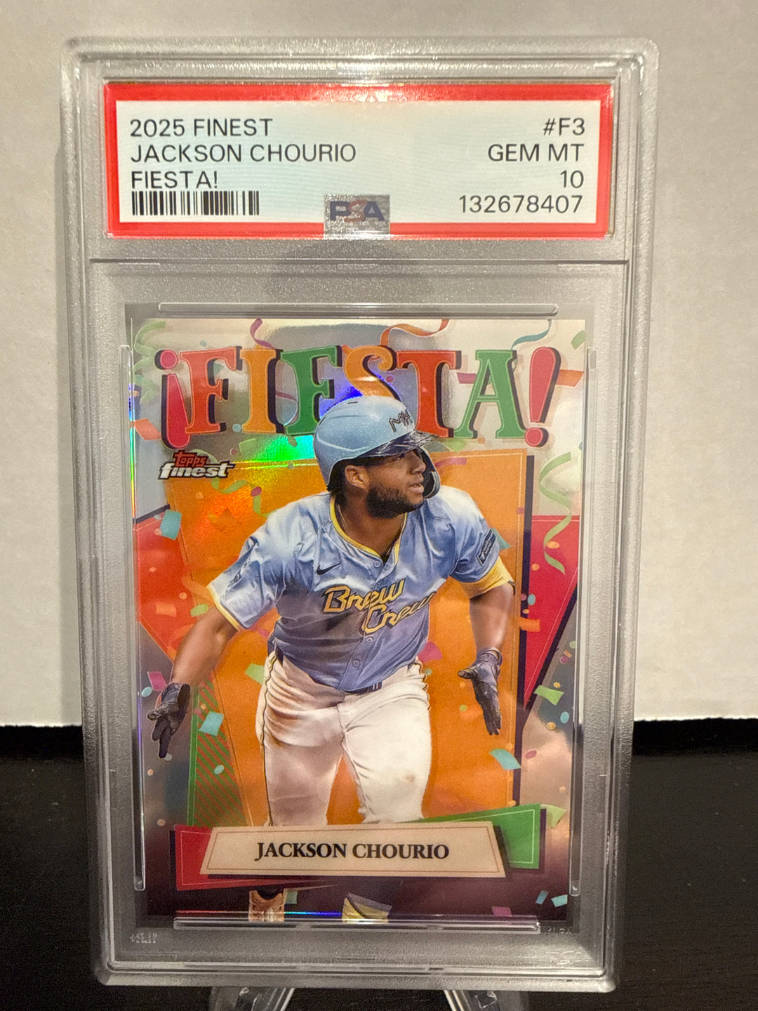 Jackson Chourio 2025 Topps Finest Fiesta SSP Case Hit, PSA 10 Gem Mint