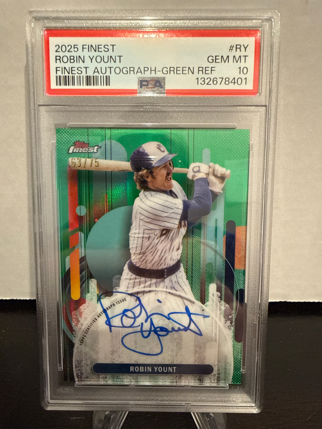 Robin Yount 2025 Topps Finest Green Refractor Auto, 63/75, PSA 10 Gem Mint