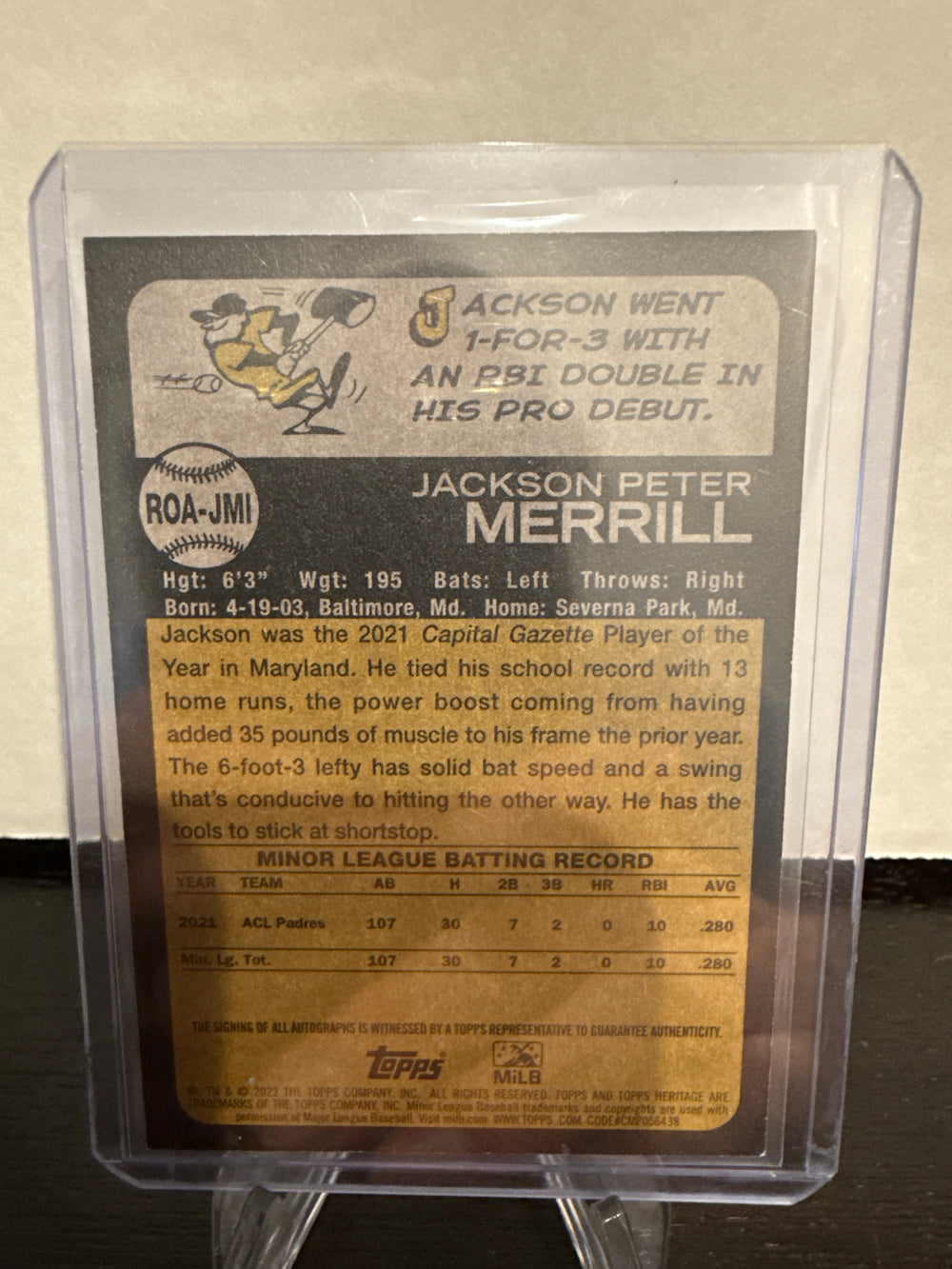 Jackson Merrill 2022 Topps Heritage Minor Leagues Real One Auto