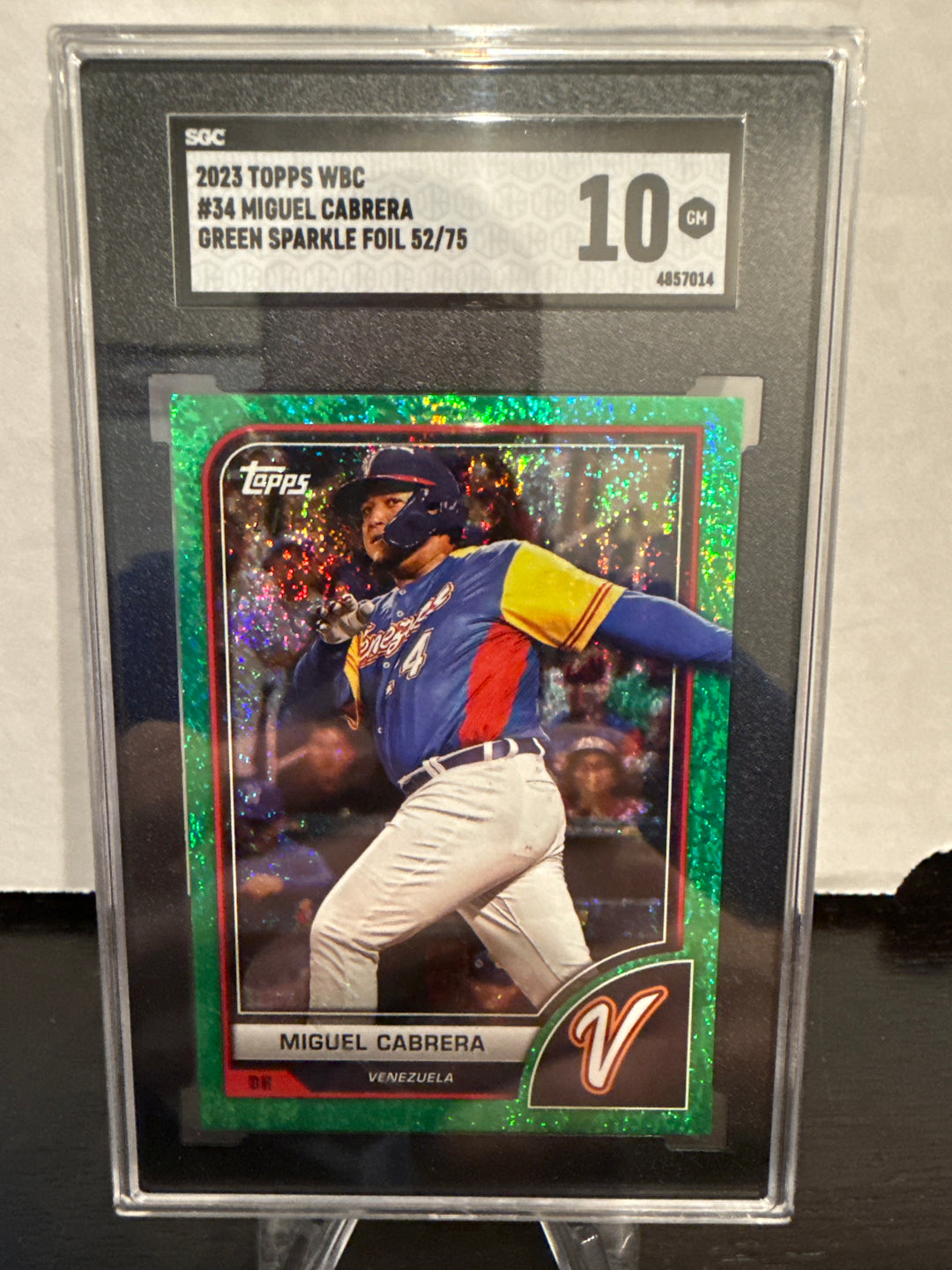 Miguel Cabrera 2023 Topps World Baseball Classic Green Sparkle Foil, 52/75, SGC 10 Gem Mint