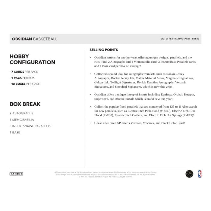 2024-2025 Panini Obsidian Basketball Hobby Box