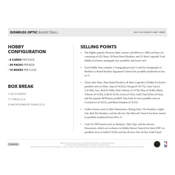 2024-2025 Panini Donruss Optic Basketball Hobby Box Pack