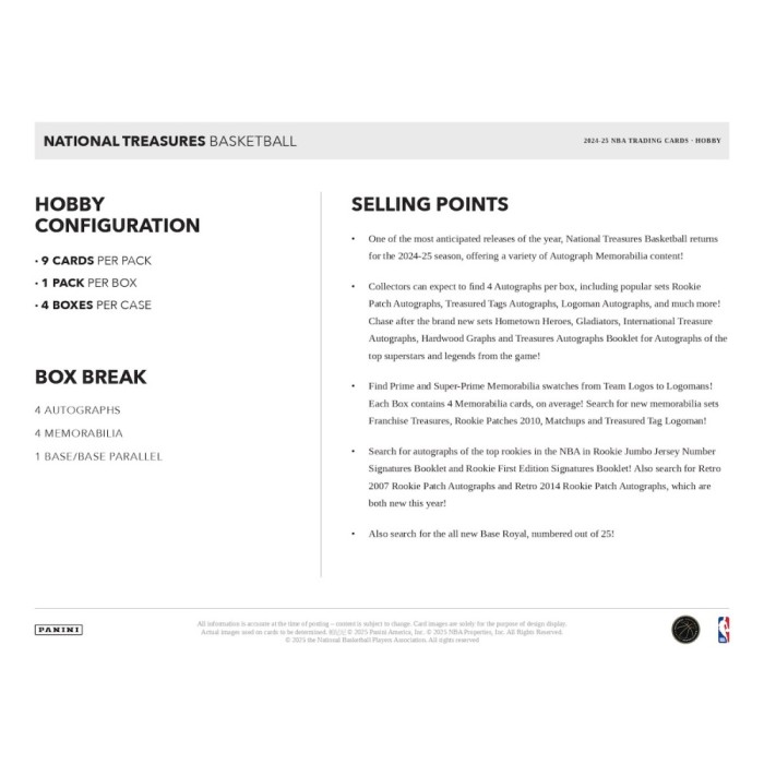 2024-2025 Panini National Treasures Basketball Hobby Box