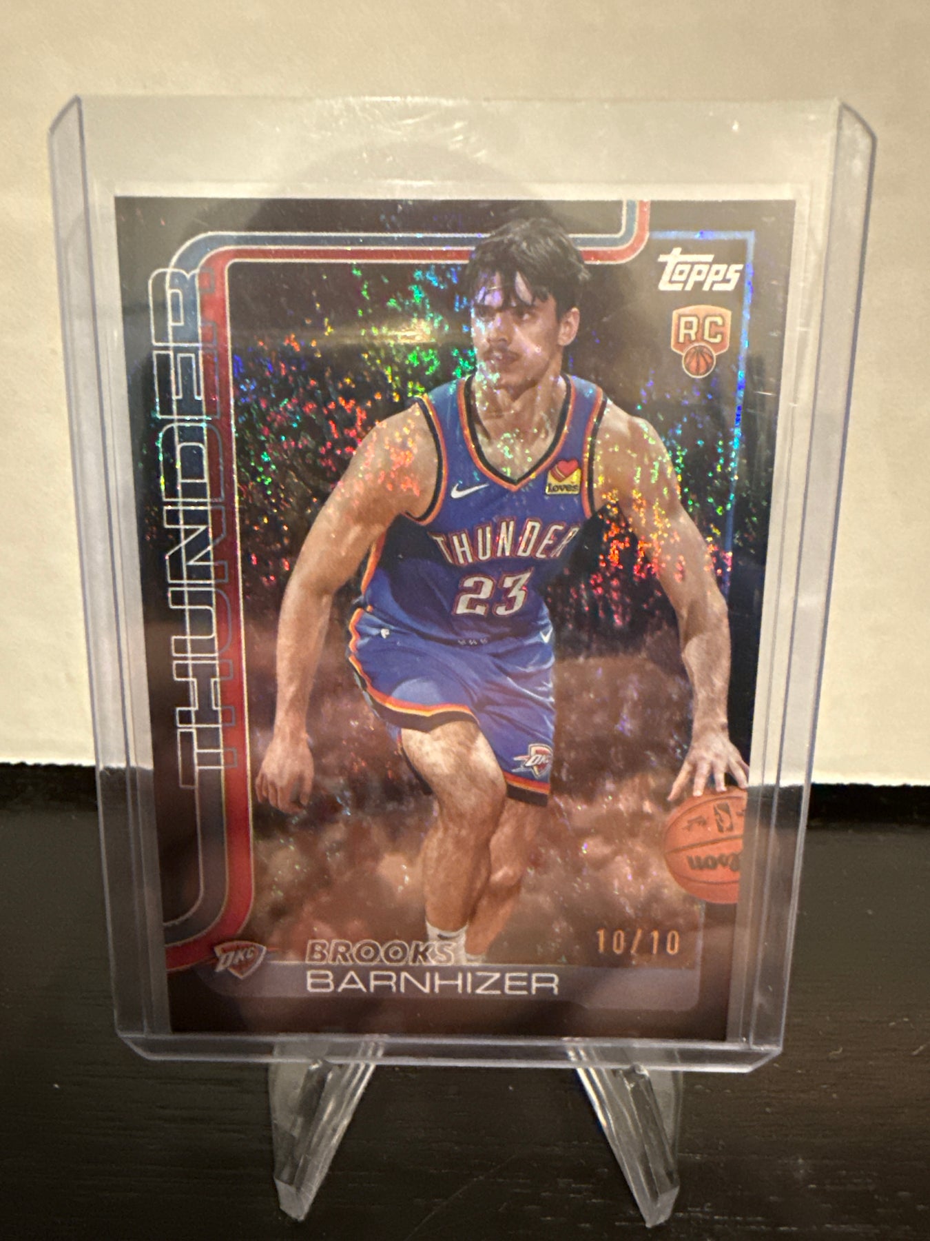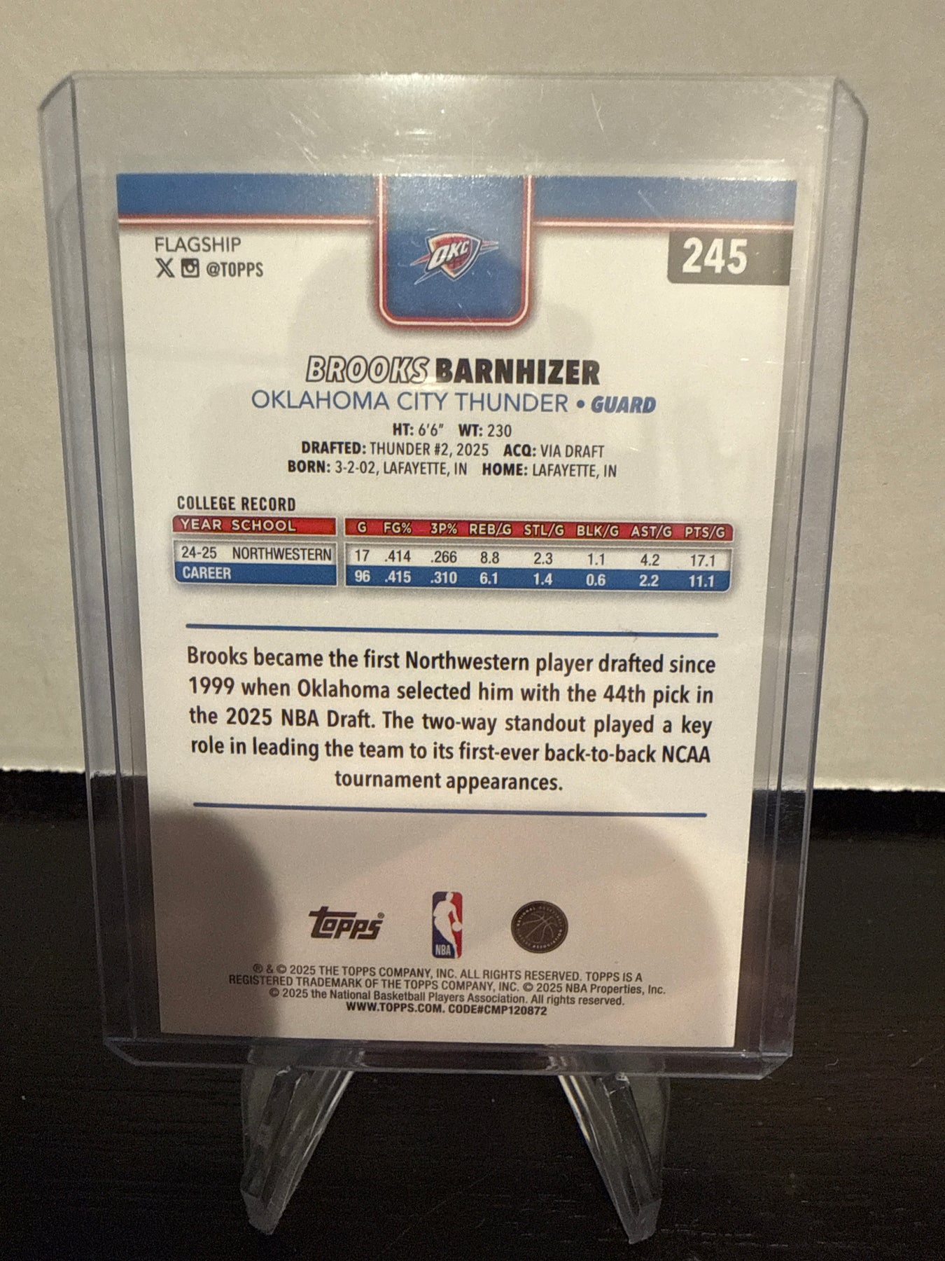 Brooks Barnhizer 2025 Topps Basketball Flagship Black Foil Rookie, 10/10, Card Number 245Card Stand sold separately.