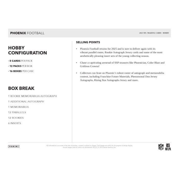 2025 Panini Phoenix Football Hobby Box at a Glance: