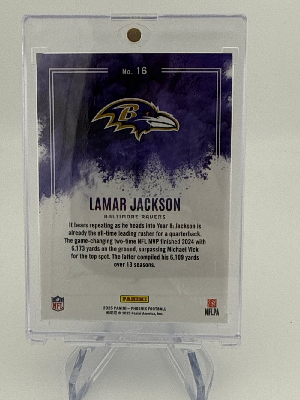 Lamar Jackson 2025 Panini Phoenix SSP Color Blast Case Hit