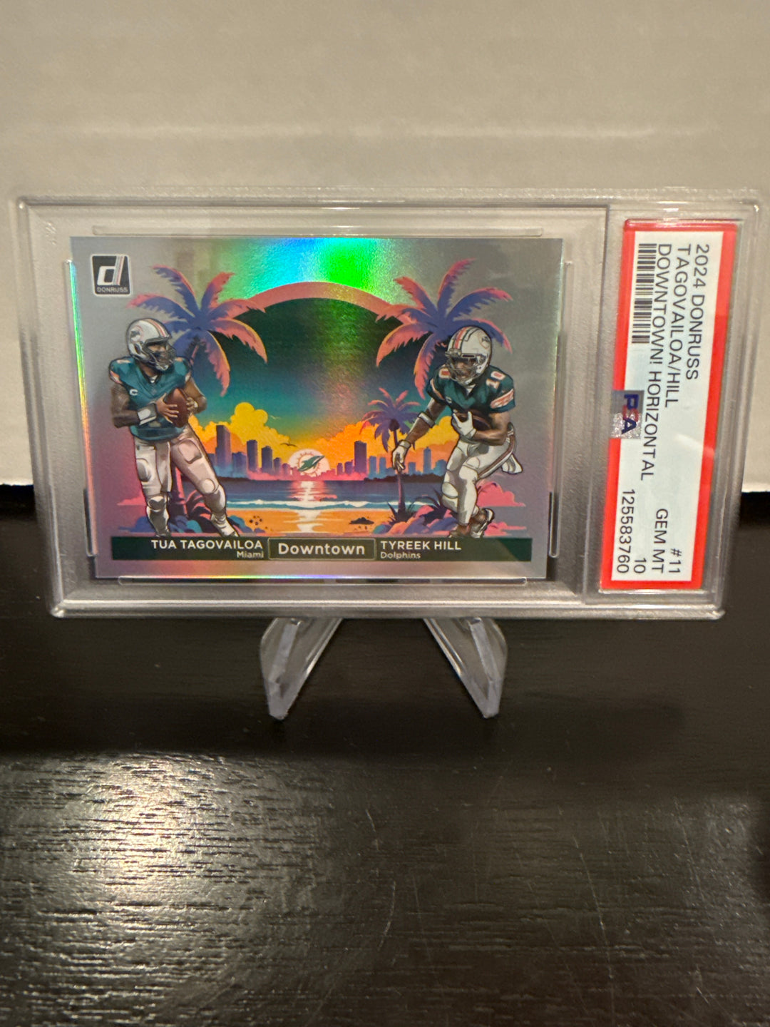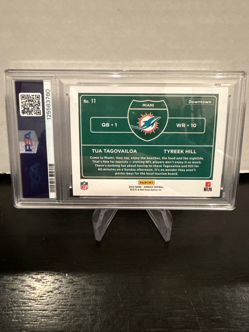 Tua Tagovailoa/Tyreek Hill 2024 Panini Donruss Dual Downtown SSP Case Hit, PSA 10 Gem Mint
