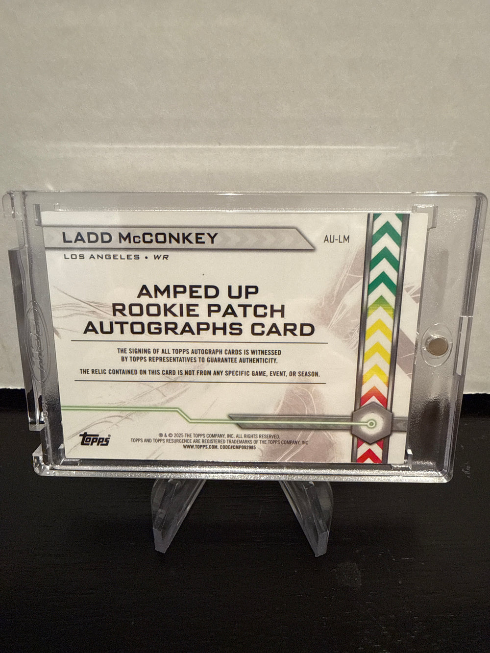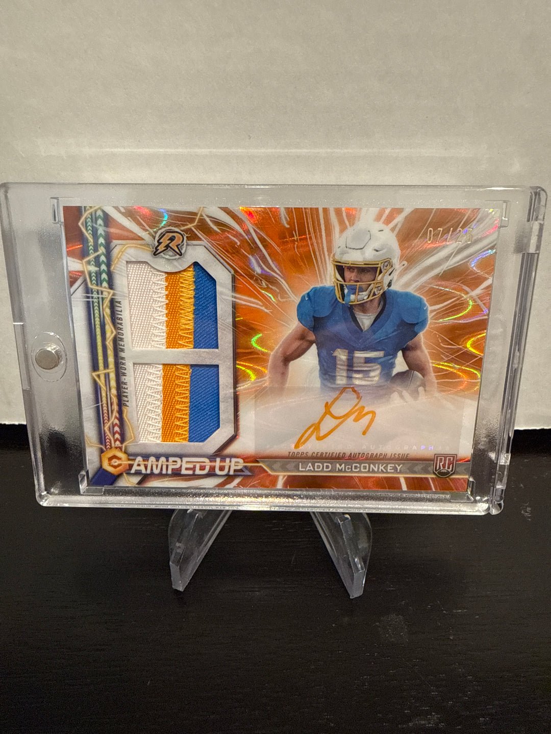 Ladd McConkey 2024 Topps Resurgence Amped Up Rookie Dual Patch Auto Orange Lava, 07/25