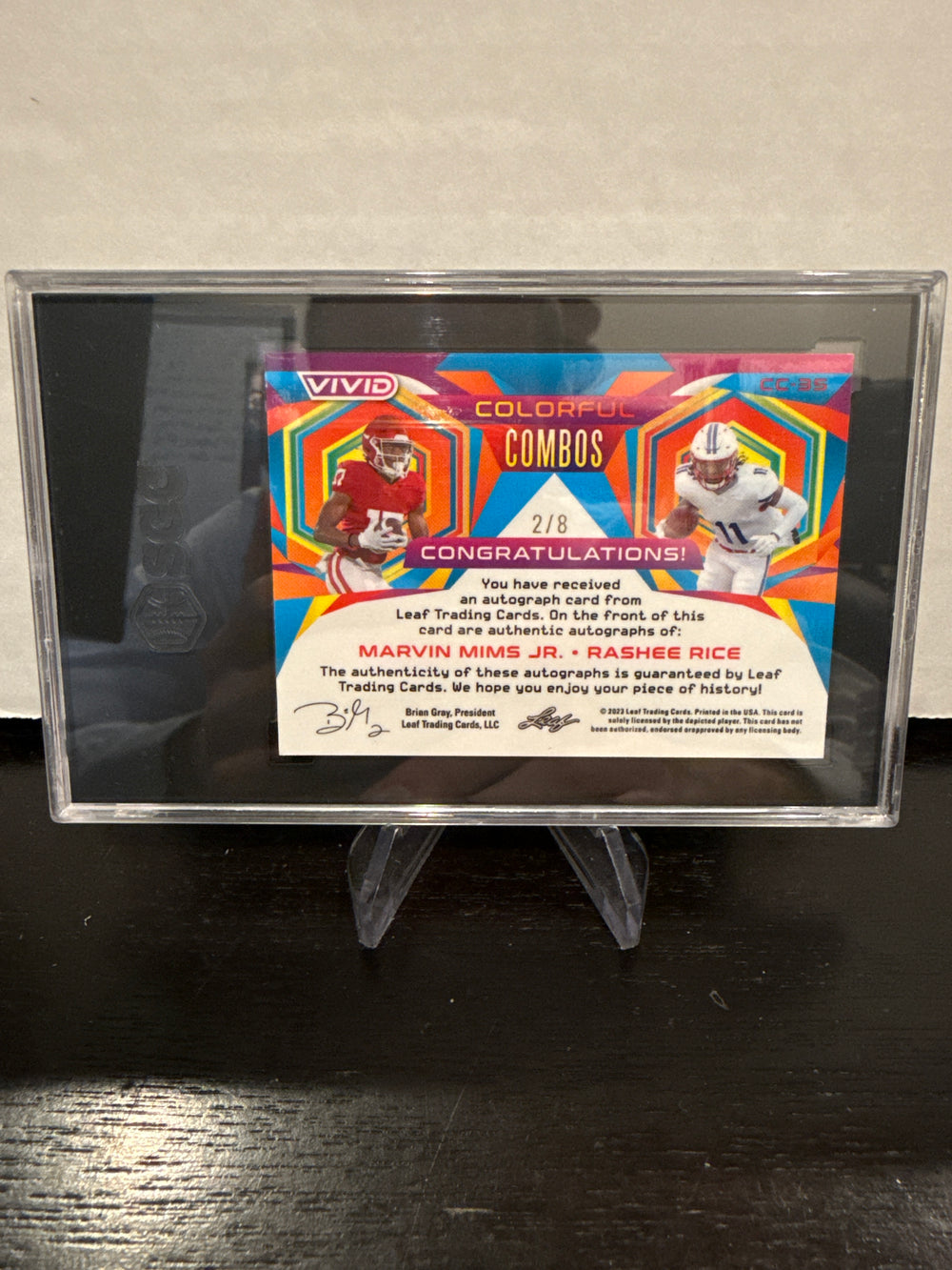 Marvin Mims Jr/Rashee Rice 2023 Leaf Vivid Colorful Combos Dual Rookie Auto Red, 2/8, SGC 9.5 Gem Mint