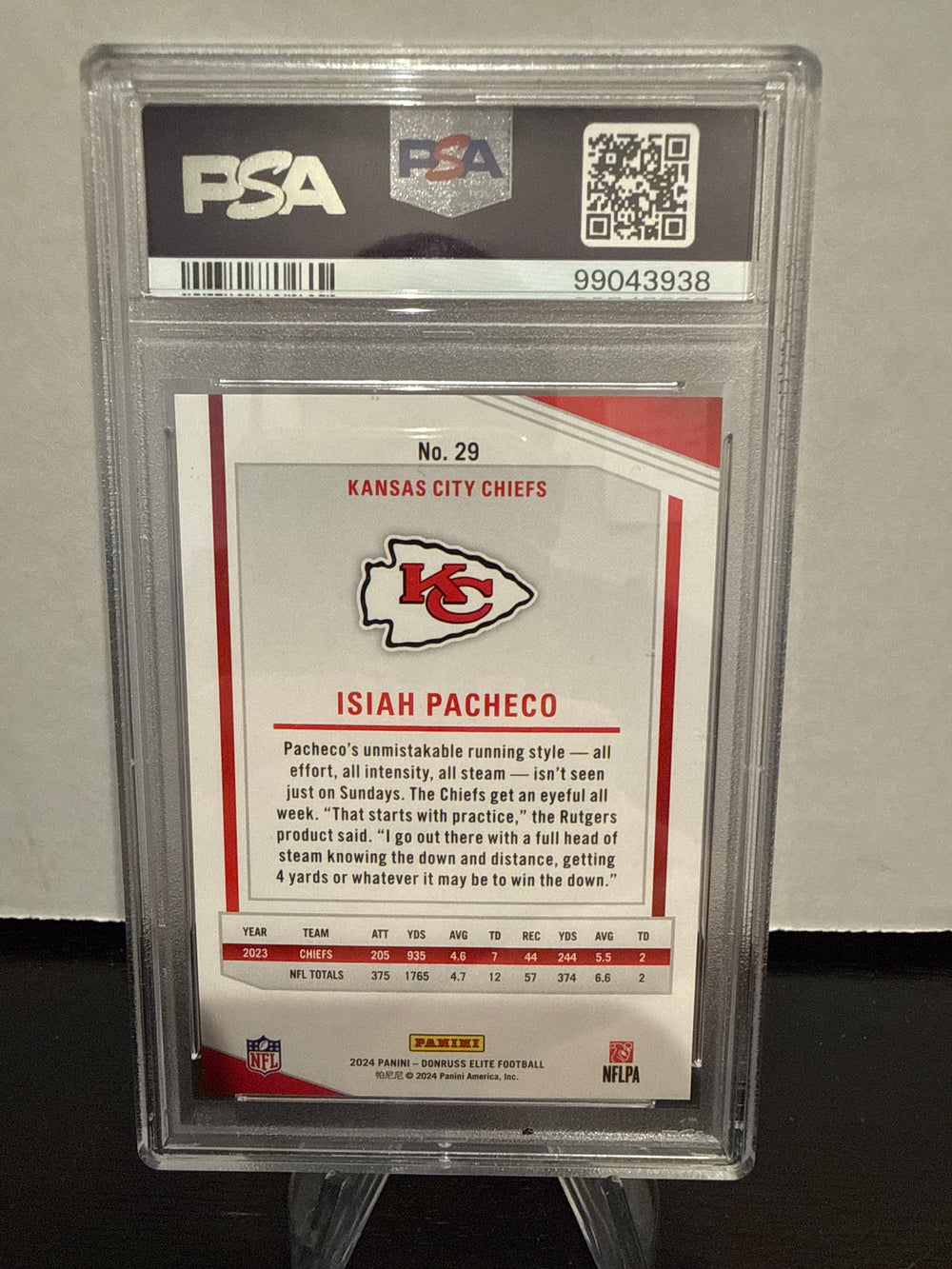 Isiah Pacheco 2024 Panini Donruss Elite Platinum FOTL, 2/3, PSA 10 Gem Mint
