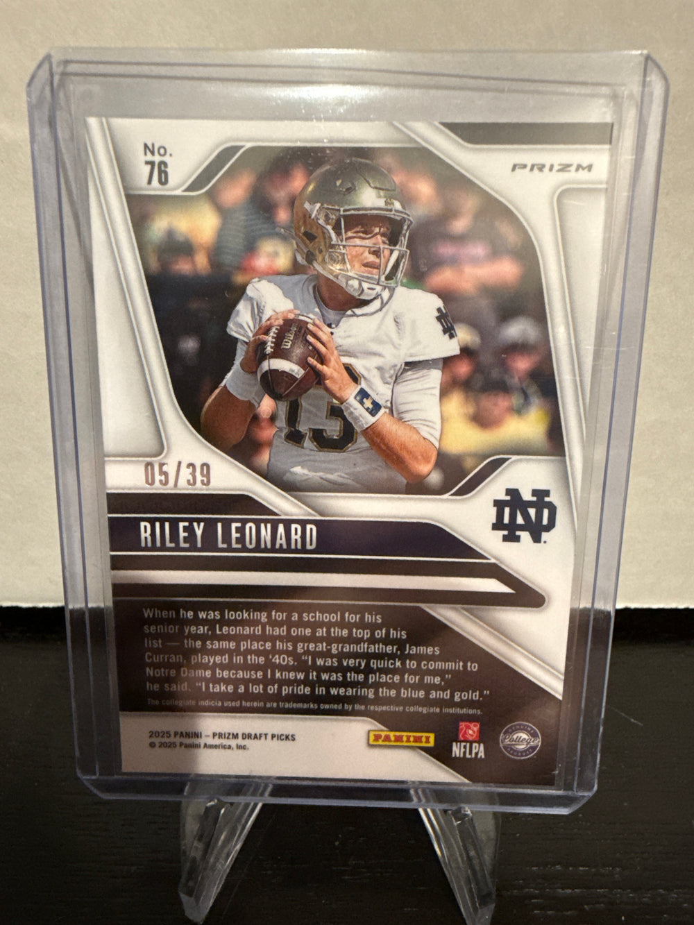 Riley Leonard 2025 Panini Prizm Draft Picks Orange Finite Rookie, 05/39